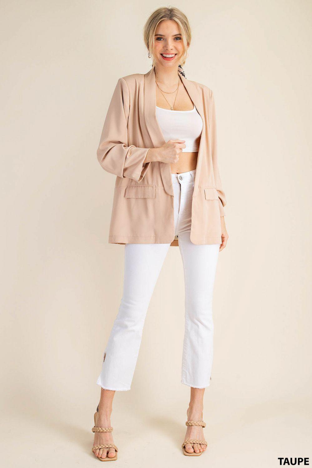 You've been looking for the PERFECT blazer, and so have we! FOUND! You'll love this silky blazer with gorgeous animal print silky lining! This one comes with shoulder pads, or feel free to cut them out if you have broader shoulders!