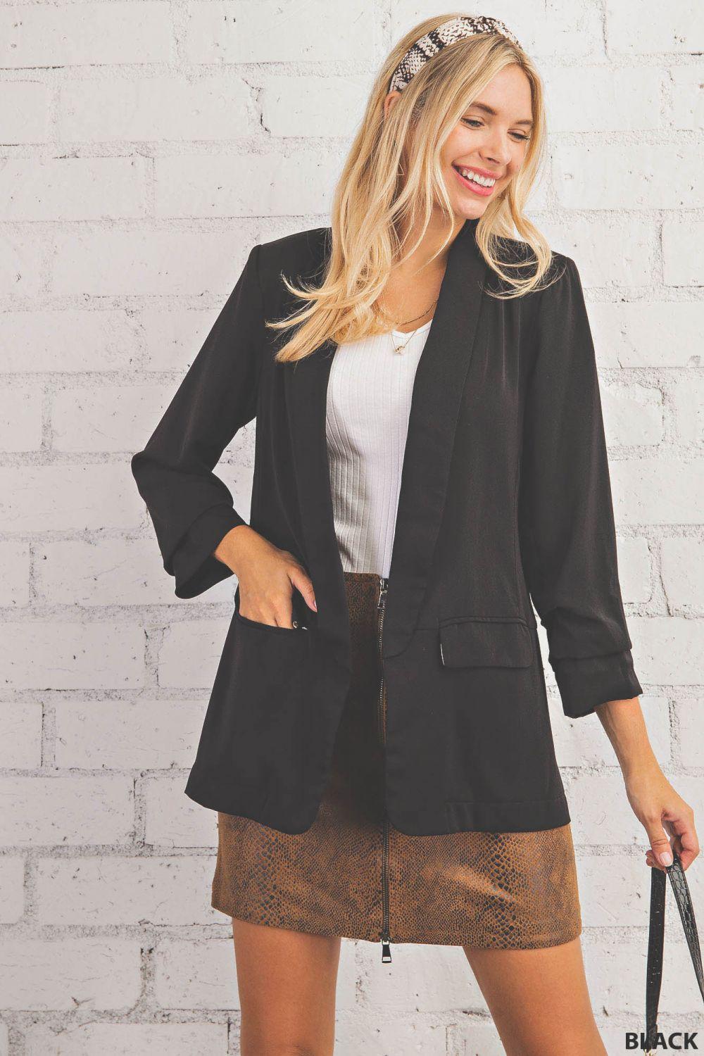 RUCHED - SLEEVE ANIMAL PRINTED LINED OPEN BLAZER