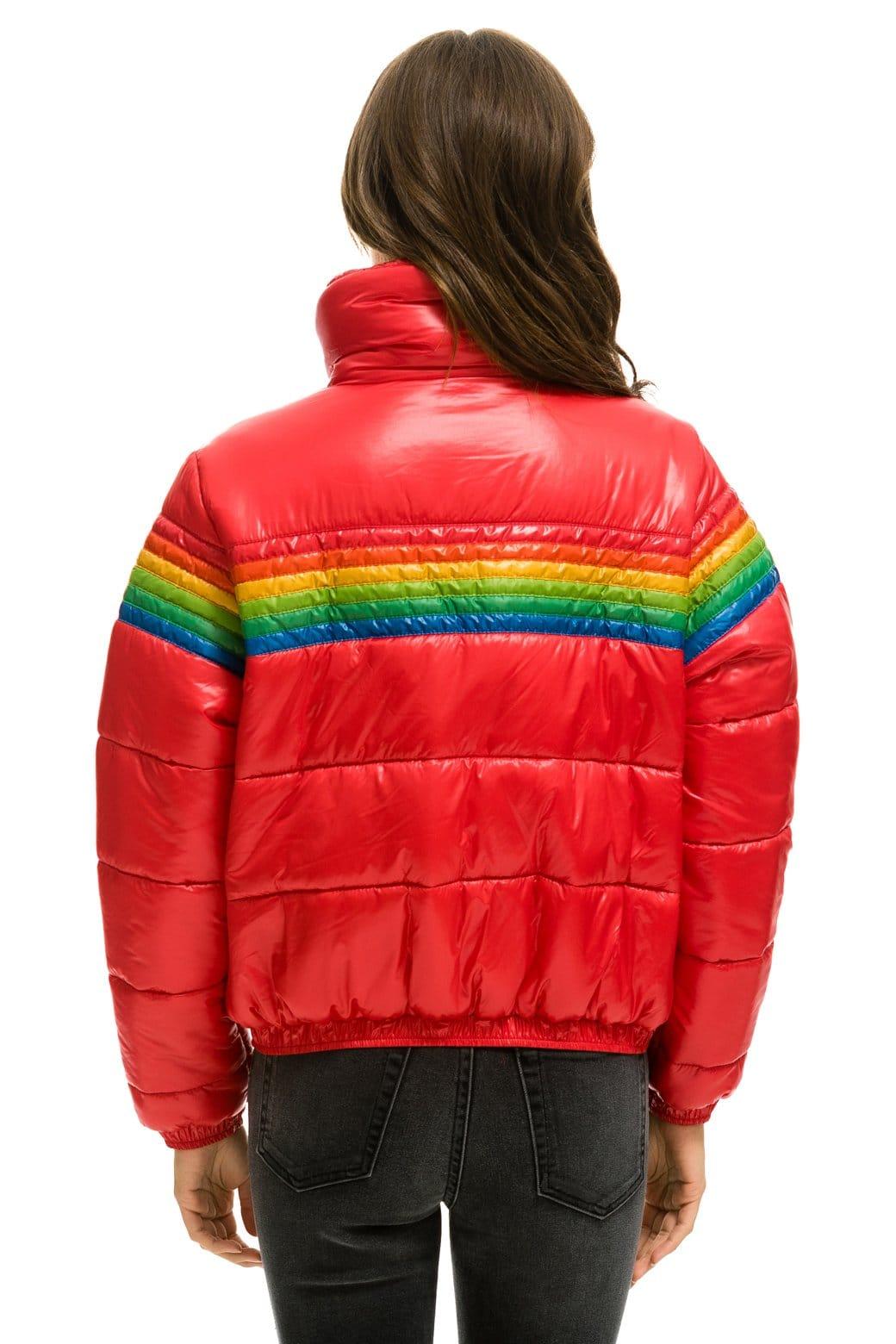 6 STRIPE LUXE APRES PUFFER JACKET - GLOSSY CHERRY Female