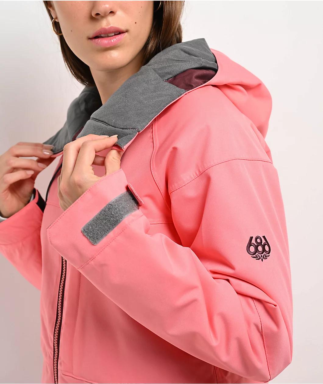 Landing in a bright "Tulip" pink colorway, the women's Athena snowboard jacket from 686 is perfect for the mountain slopes. Dual layer infiDRY® fabric helps make the jacket 10K water resistant, while infiLOFT® insulation helps ensure warmth.
