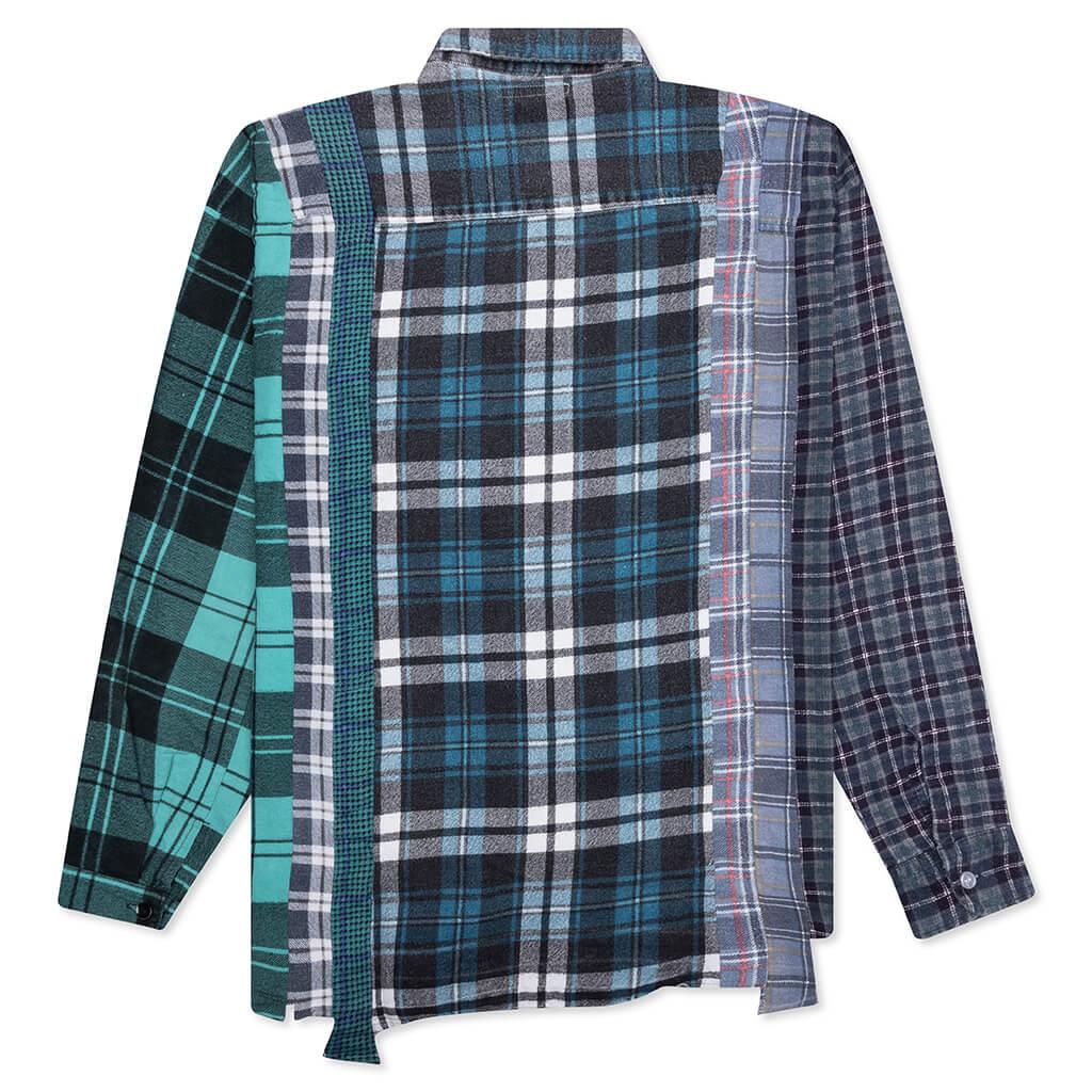 The 7 Cuts Wide Flannel Shirt from Needles makes a statement in any rotation. The garment is made from various cotton flannel shirts and creates a reworked silhouette with an asymmetrical hem. Each shirt is unique and will feature different colors and cuts. Some finishing touches include a chest pocket, buttoned cuffs, and a classic collar. 100% Cotton One-of-one design Reworked fabric Wide fit Asymmetrical hem Chest pocket Button closure Buttoned cuffs Classic collar Style No: PU349-AS-5