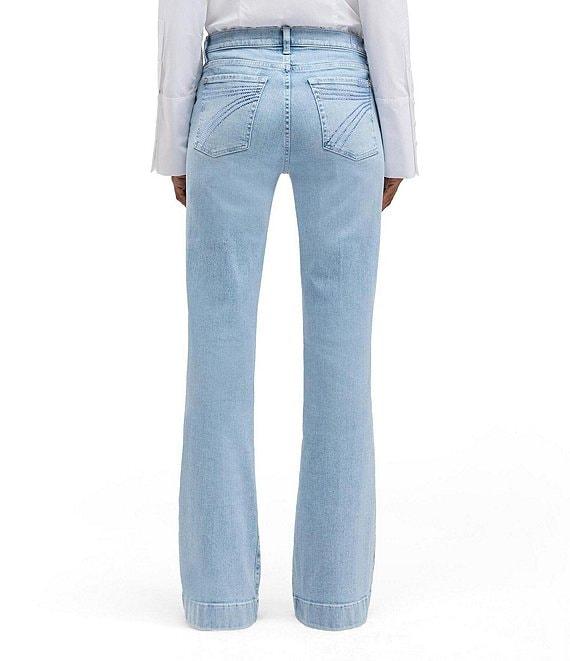 From 7 For All Mankind, these jeans feature: Denim fabrication Mid rise waistline Zipper fly with button closure Flare leg Classic 5-pocket silhouette Twisted seam detail Slim illusion high-stretch denim Approx. 32" inseam Cotton/elastane Machine wash cold/dry flat Imported.