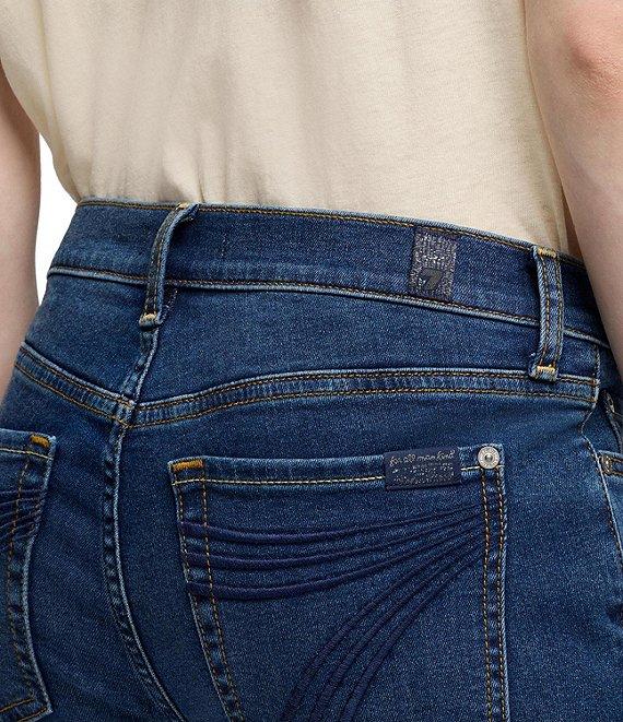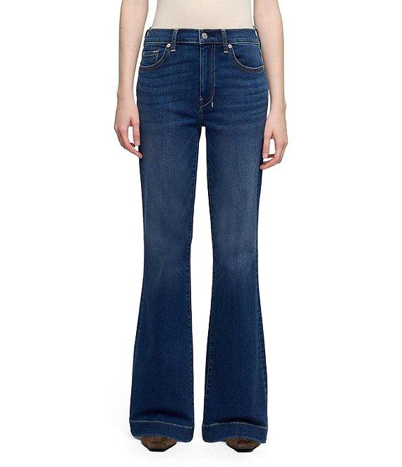 From7 for all mankind, these jeans feature:stretch denim fabricationflare leg silhouettemid-rise waist 5-pocket style shorter inseam trouser with wide leg openingembroidered 7 back pocket detailingstraight hemline front button/zip fly closure approx. 32 length, 9 inseamcotton/spandexmachine wash/line dry Imported.
