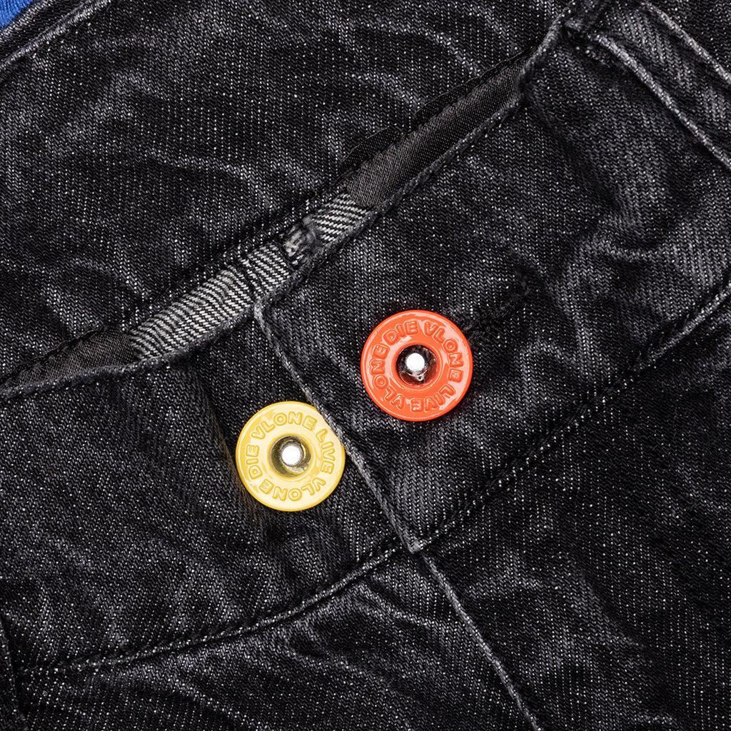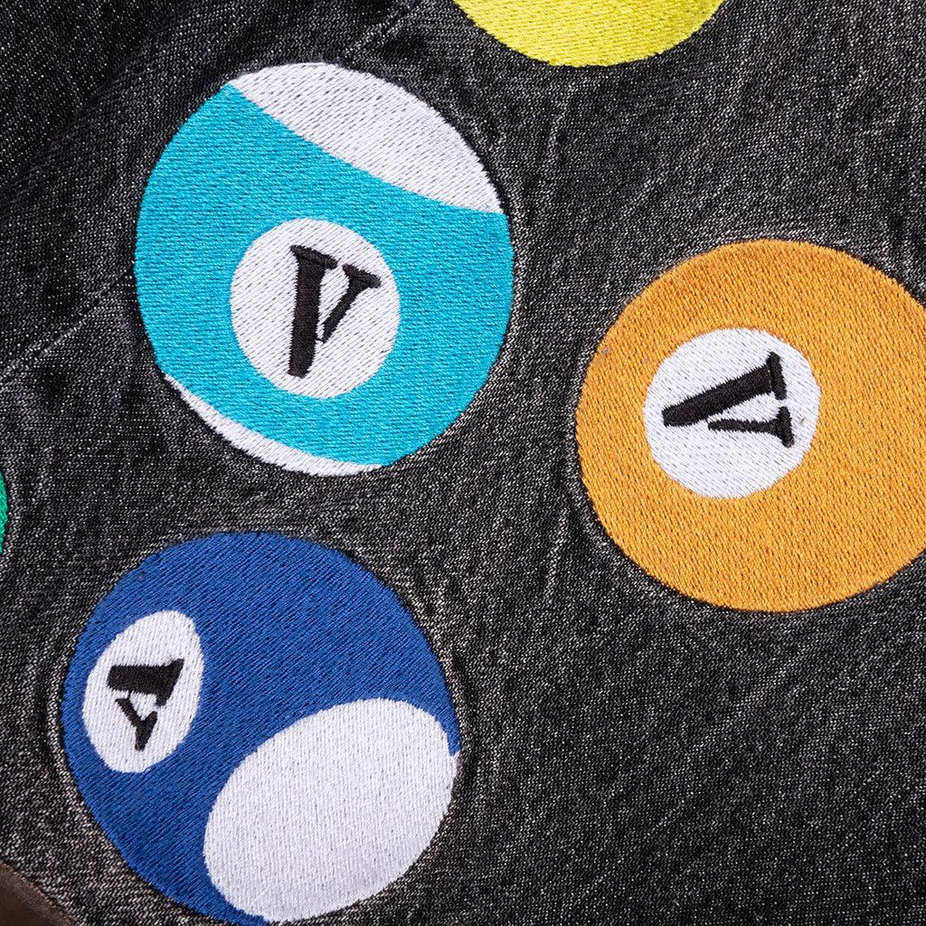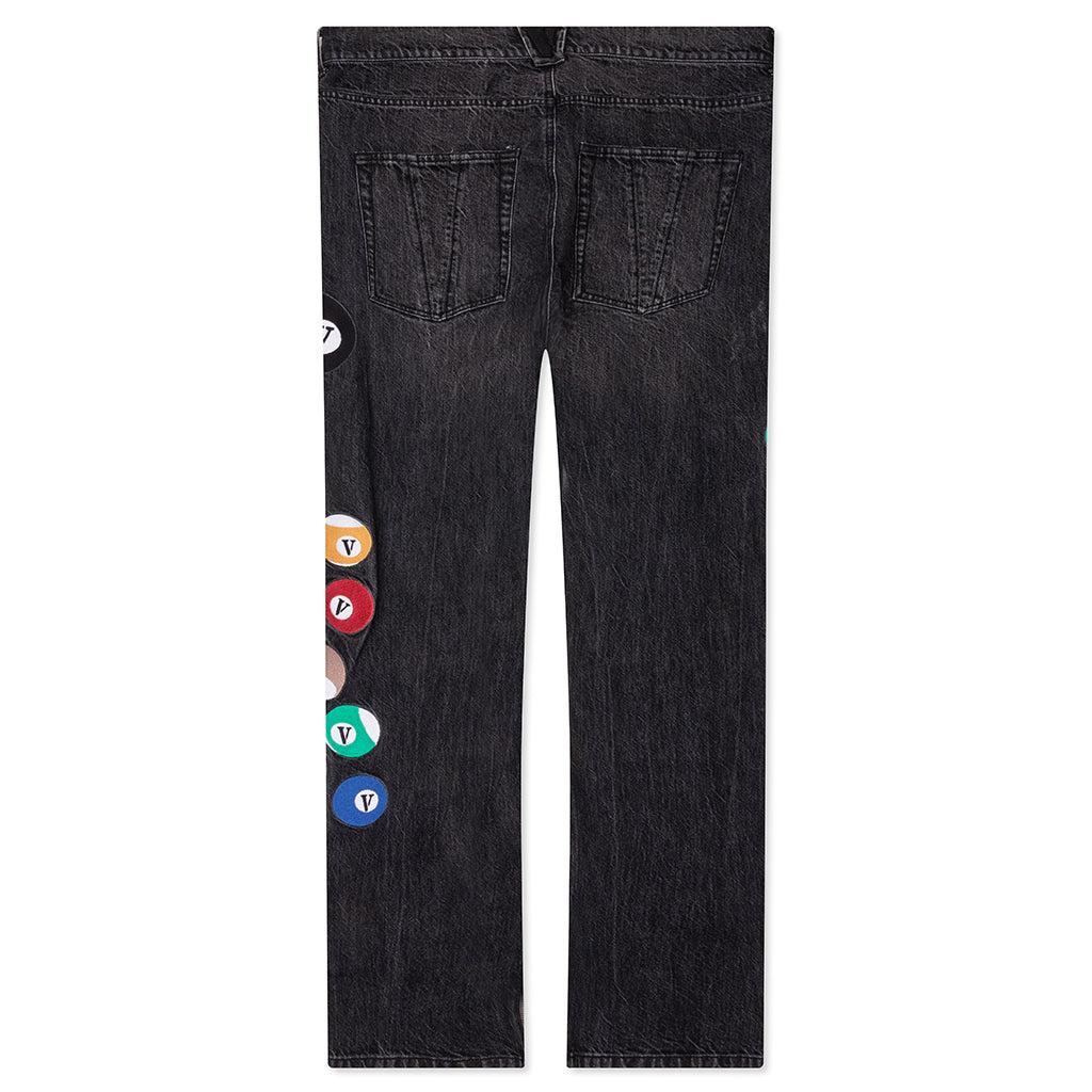 The 8 BVLL Jeans from VLONE are crafted from premium denim and feature a vintage wash with a loose fit for everyday comfort. Embroidered "V" billiards motifs add signature flair throughout, while a RiRi zip fly with two custom-branded buttons ensures a secure fit. Designed with five functional pockets and five belt loops, including an embroidered "V" detail at the back loop. 100% Cotton Denim Vintage wash Loose fit 5-pocket construction 5 belt loops with embroidered "V" at back Embroidered "V" billiards motifs RiRi zip fly with 2 custom brand buttons Style No: 8BVLL-BLK
