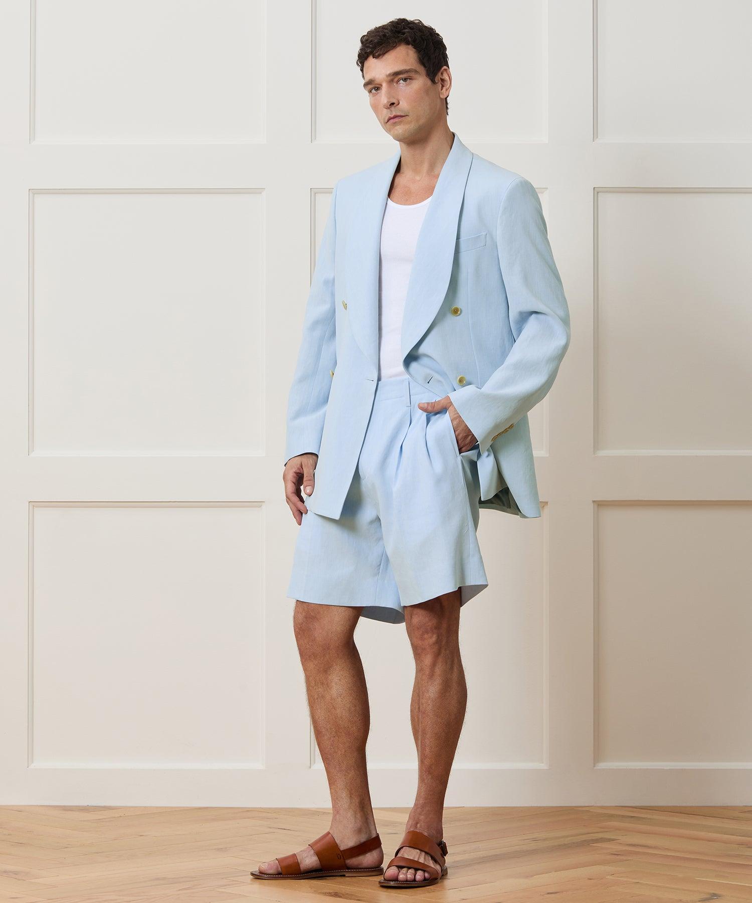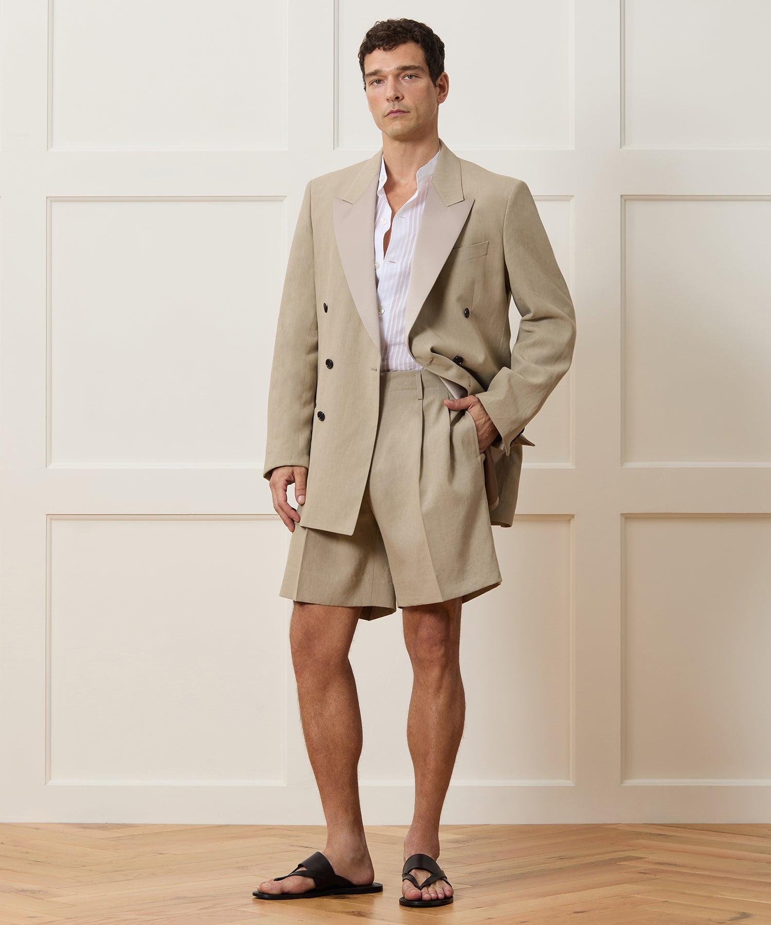 Shorts with enough old-school Hollywood glamor, you can wear them to work, weddings or wherever. With a relaxed fit and double pleats, these are as comfortable as they are chic. A careful attention to detail is apparent throughout — take the darting on the pleats, which extends up to the waistband and mirrors the darts at the back of the waist, all in pursuit of the perfect fit. They’re crafted from a luxurious three-ply linen we call “sueded” for its exceptionally soft handfeel. Traditional linen is crisp and dry; here, the fabric undergoes a rigorous finishing process, resulting in a smoother feel that retains linen’s breathability and drape. Better yet, it’s less prone to wrinkling, which makes it the perfect way to suit up for summer event season. Matching Jacket Available 100% Linen Relaxed Fit Fully Lined 8.5” Inseam Hook-and-Clasp Waist Closure Belt Loops Double Reverse Pleats Side Seam Hand Pockets Jetted Besom Back Pockets Made in Italy Dry Clean Only Style PA334399