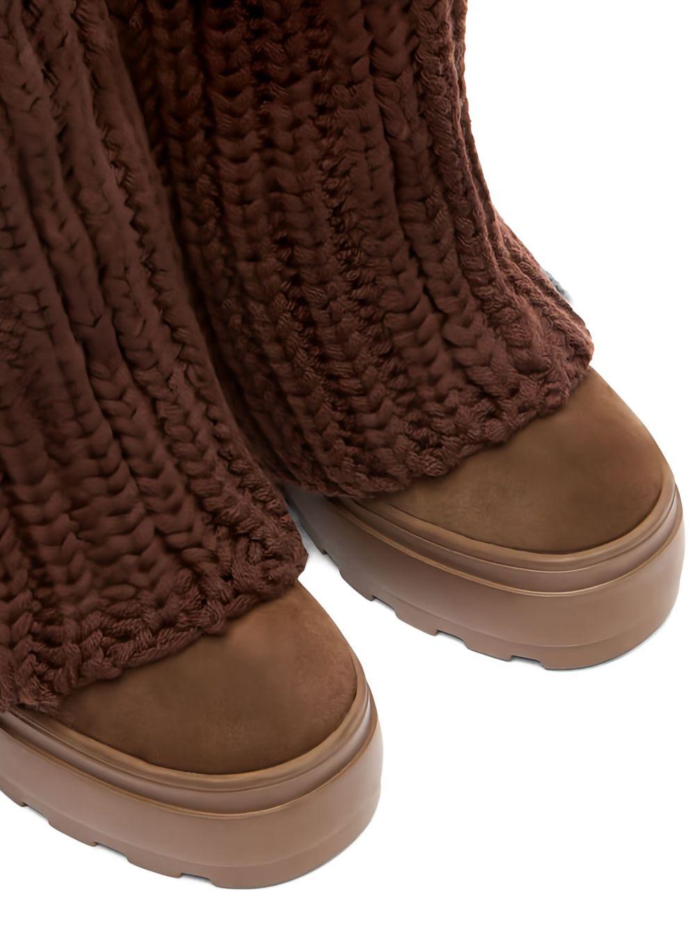 Casadei 80mm knitted platform boots | Brown | brown | knitted upper | platform sole | slip-on style | round toe | branded insole | Rubber/Fabric/Calf Suede/Wool | Knee-High Boots | Boots | Shoes | Women