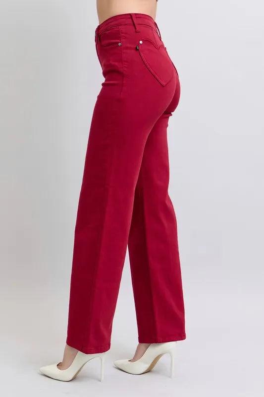 The High Waist Heart Shaped Back Pockets 90's Straight Jeans are a nostalgic and trendy addition to your denim collection. These jeans feature a high waist silhouette that is flattering and on-trend. The heart-shaped back pockets add a playful and feminine detail to the classic 90's straight leg style. Perfect for pairing with crop tops or tucked-in blouses, these jeans offer a versatile option for both casual and dressed-up looks. Bring a touch of retro charm to your wardrobe with these chic and stylish jeans that will have you feeling like you've stepped back in time with a modern twist.Style #: 88917