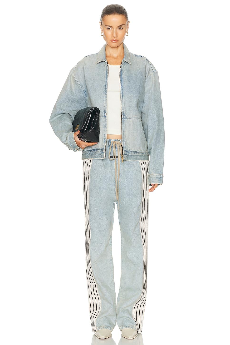 jacket100% cotton / Made in USA / Dry clean only / Front zipper closure / Side slip pockets / Fear of God leather label at back collar / Our Style No. FEAF-MO156 / Manufacturer Style No. FG830-001DNM / Model is wearing size M.