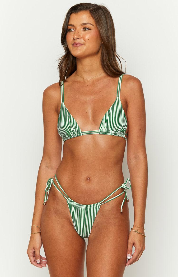 Swim Sumba Green Striped Bikini TopHow to Style:We are all about green this summer! Pair with the matching bikini bottoms, and your favourite swim cover to complete the look! Add a pair of sandals for some colour!Features: Triangle cut design Two ties at the back Gold detailing on the ends of straps Fully lined Two straps combined Adjustable cup size Stripe Print