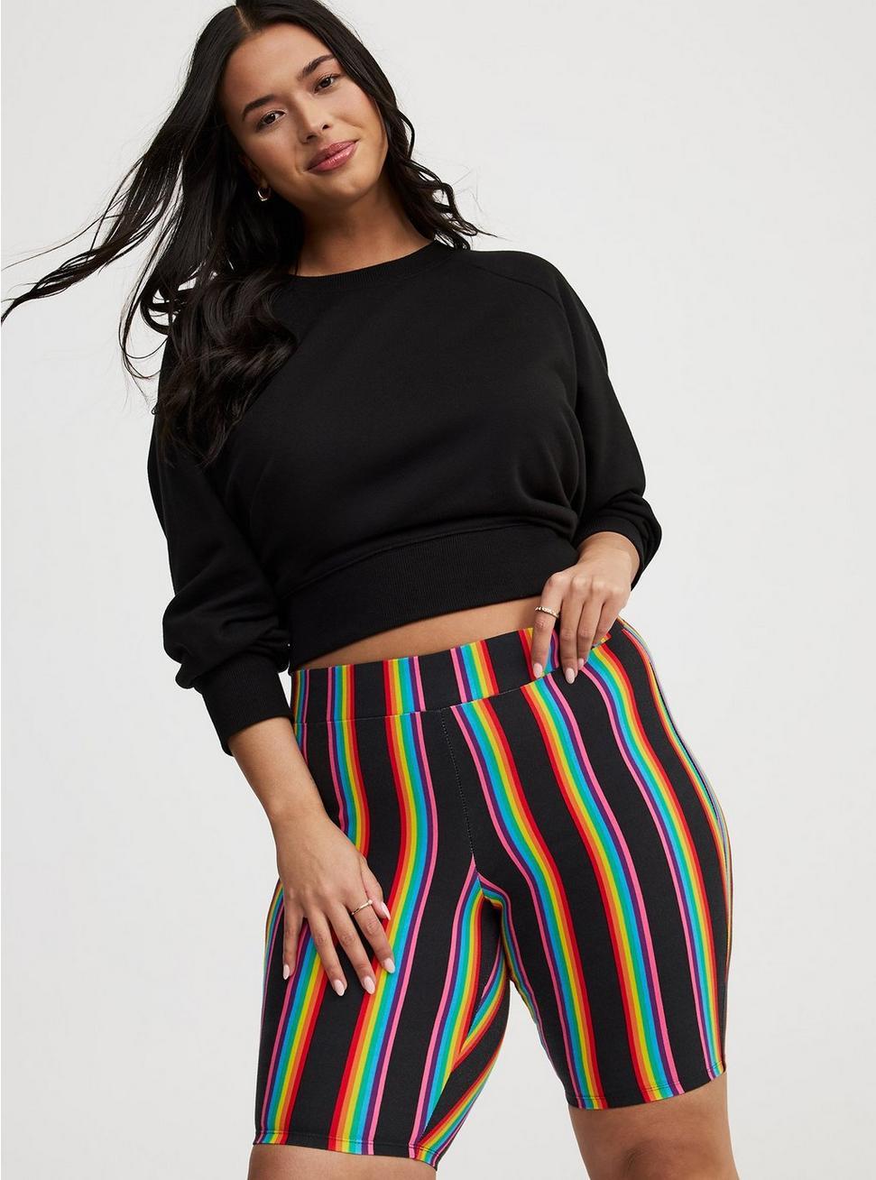 FITHigh rise.2'' Signature Waistband keeps things smooth and won't roll down.9'' inseam.MATERIALS + CAREThick cotton-blend fabric that smooths and flatters.4-way stretch with great recovery.95% cotton, 5% spandex.Machine wash cold. Dry low.Imported.DETAILSOpaque (not see-through).Prevents leg chafing.WHY WE LOVE ITWith the same incredible fit as our best-selling leggings, our bike shorts are perfect worn solo or under your fave dress or skirt to give you coverage and prevent chafing.
