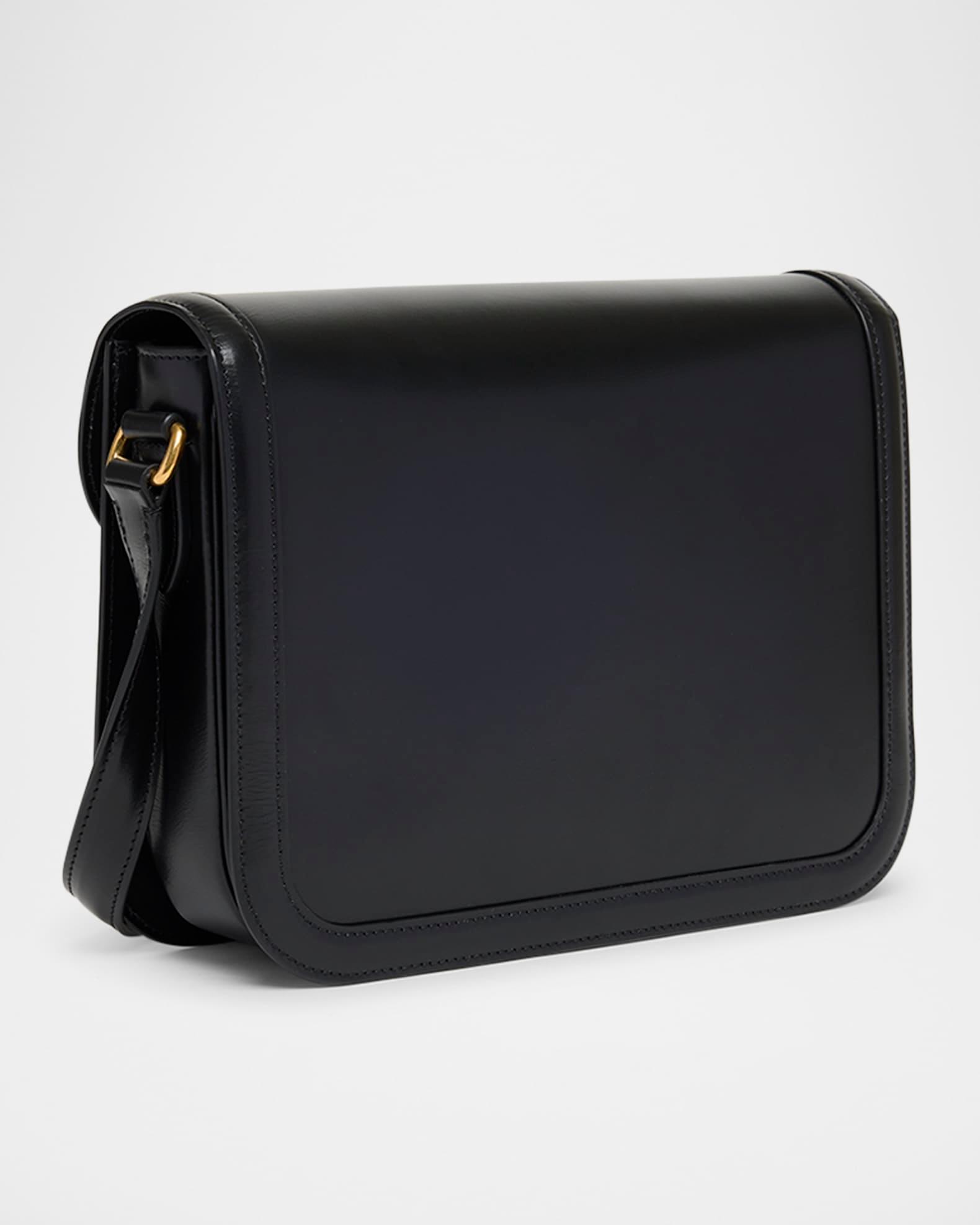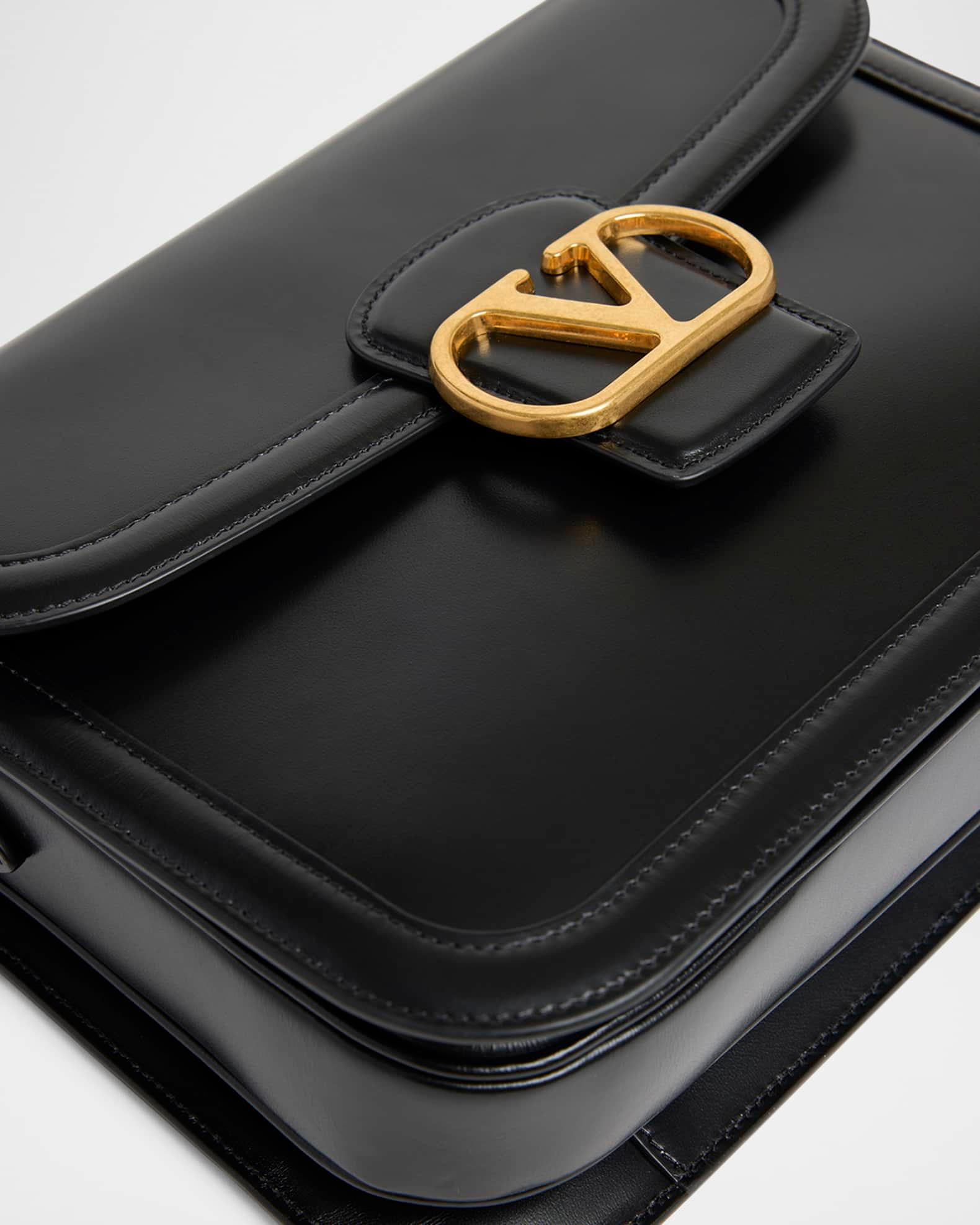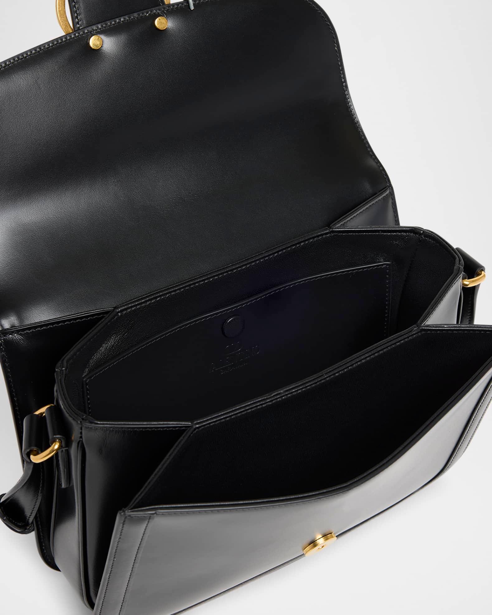Valentino Garavani "9 to 5" leather saddle crossbody bag with signature VLOGO accent Adjustable crossbody strap Can be worn as a shoulder or crossbody bag Flap top with magnetic closure Divided interior compartment; one slip pocket with snap closure Approx. 7.3"H x 9.6"W x 3.1"D Made in Italy