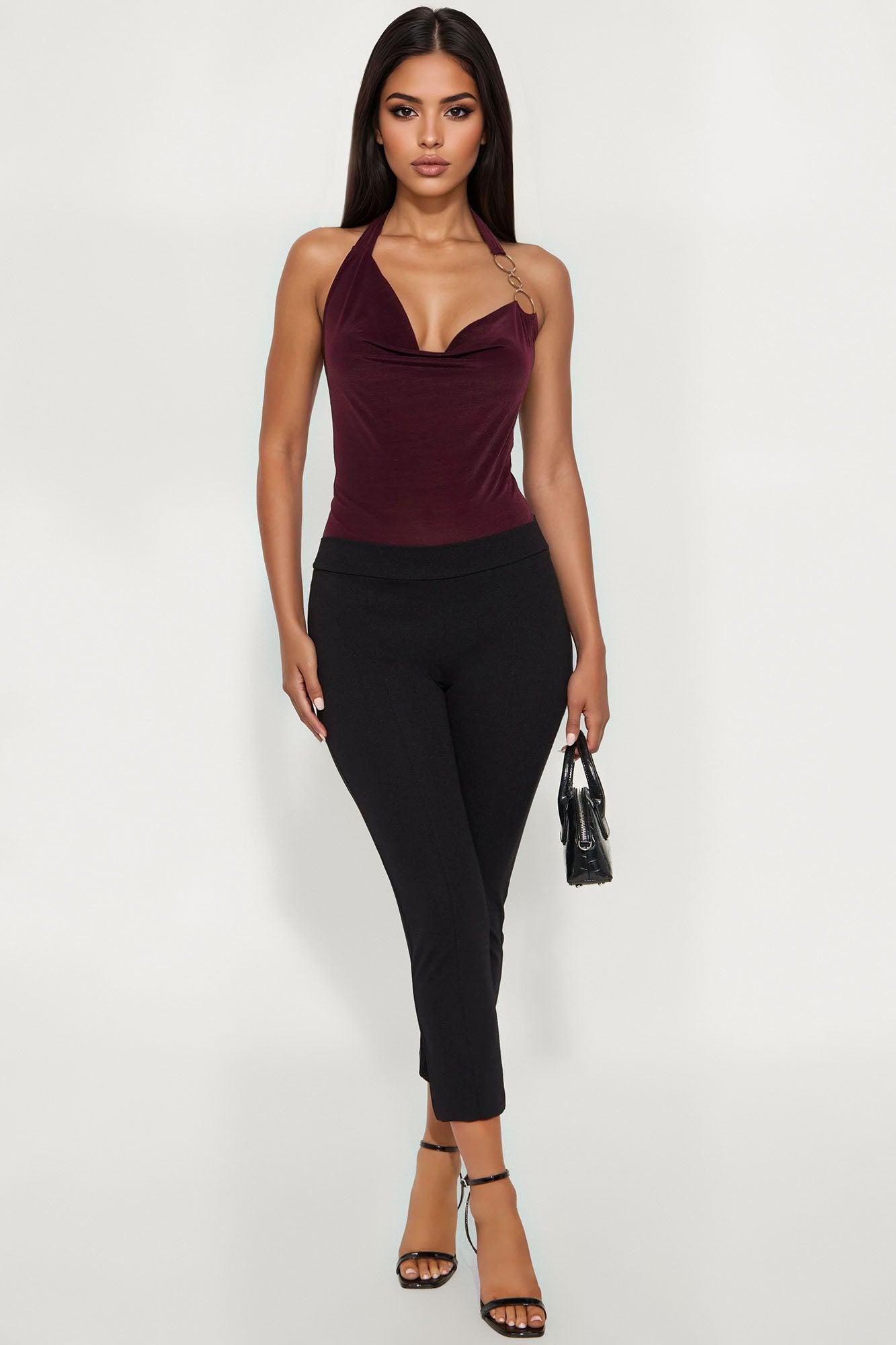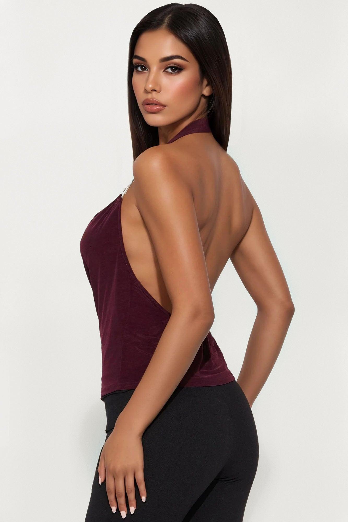 90's Sass Cowl Neck Halter Top - Burgundy Female