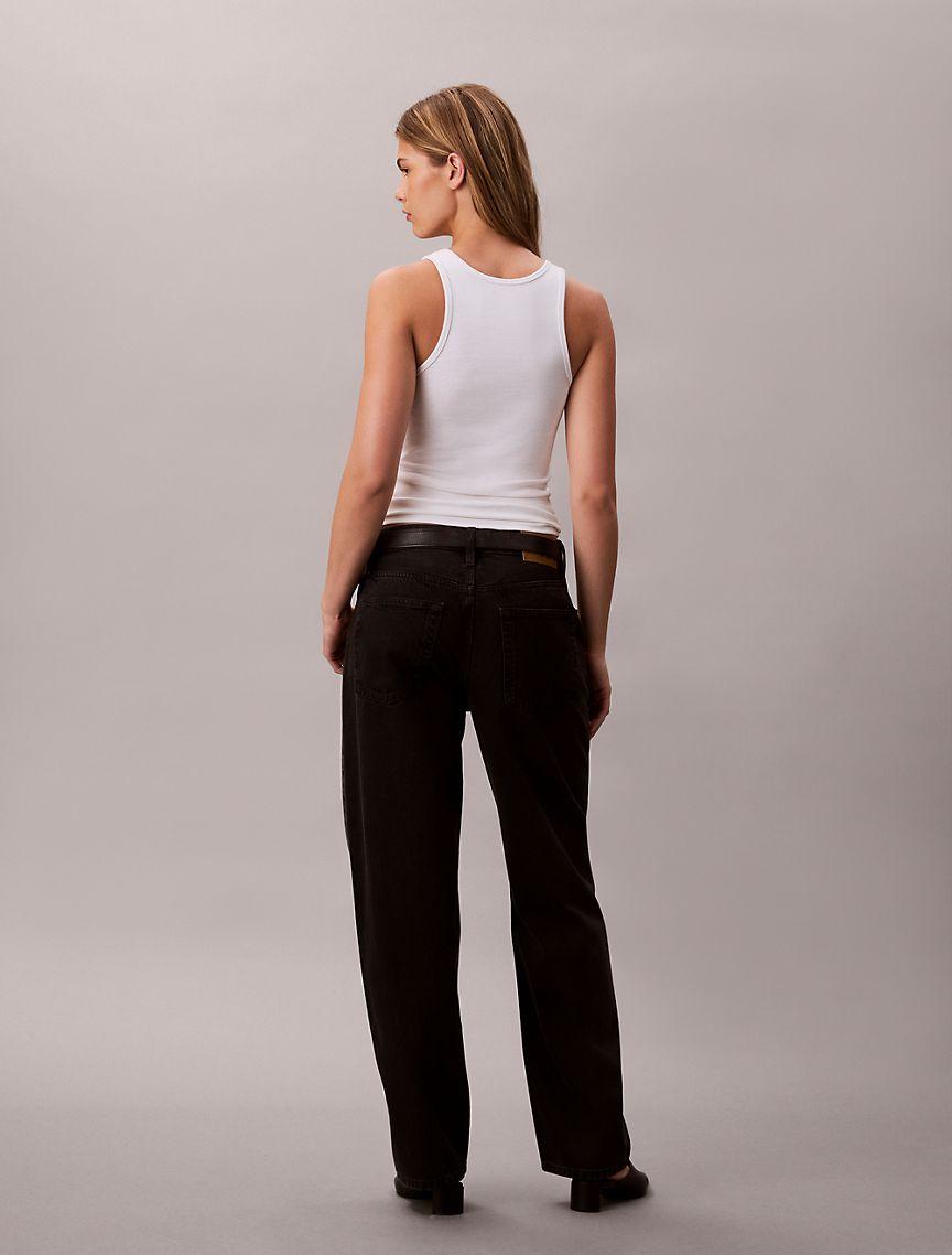 Cut in a loose fit, these jeans are a relaxed style perfect for casual outfits. Fitted with a high rise waist and made with classic 5-pocket styling. Finished with a Calvin Klein logo patch at the back waist.