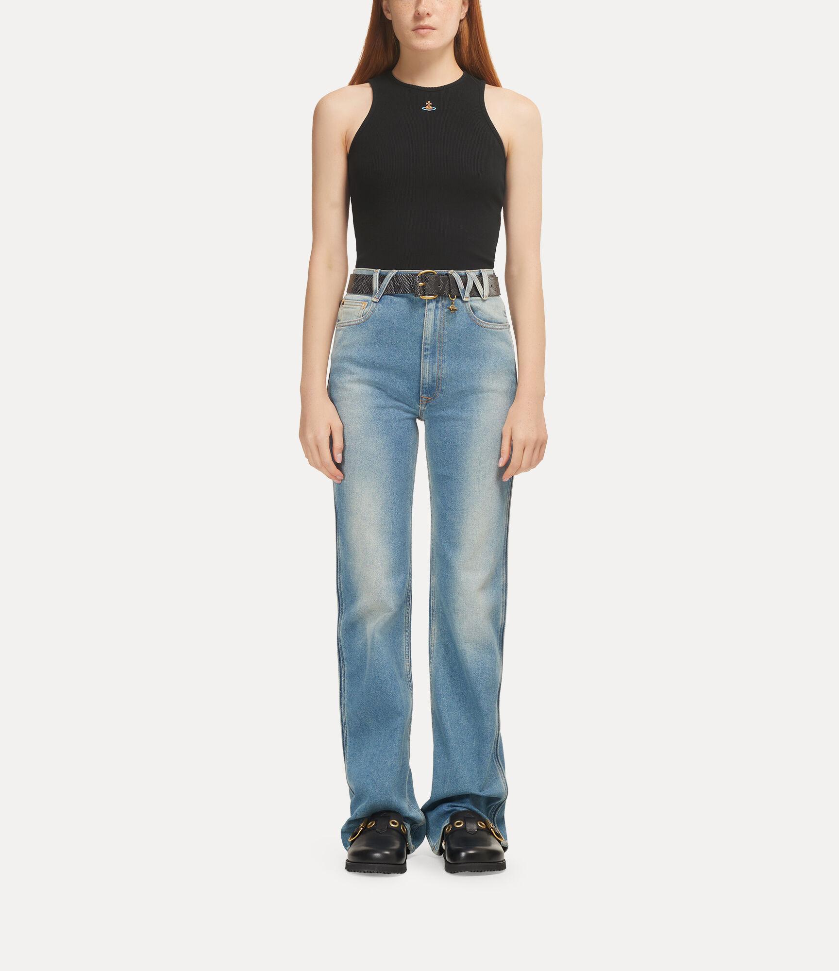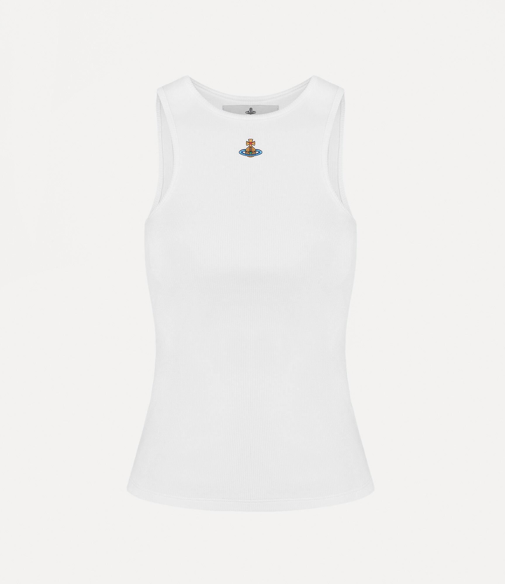 Our 90s vest features a cotton-blend silhouette, complete with an all-over ribbed finish. As part of our new range, the piece receives a multi-coloured orb embroidery under the scoop neckline, synonymous with Vivienne's vision of launching tradition into the future.