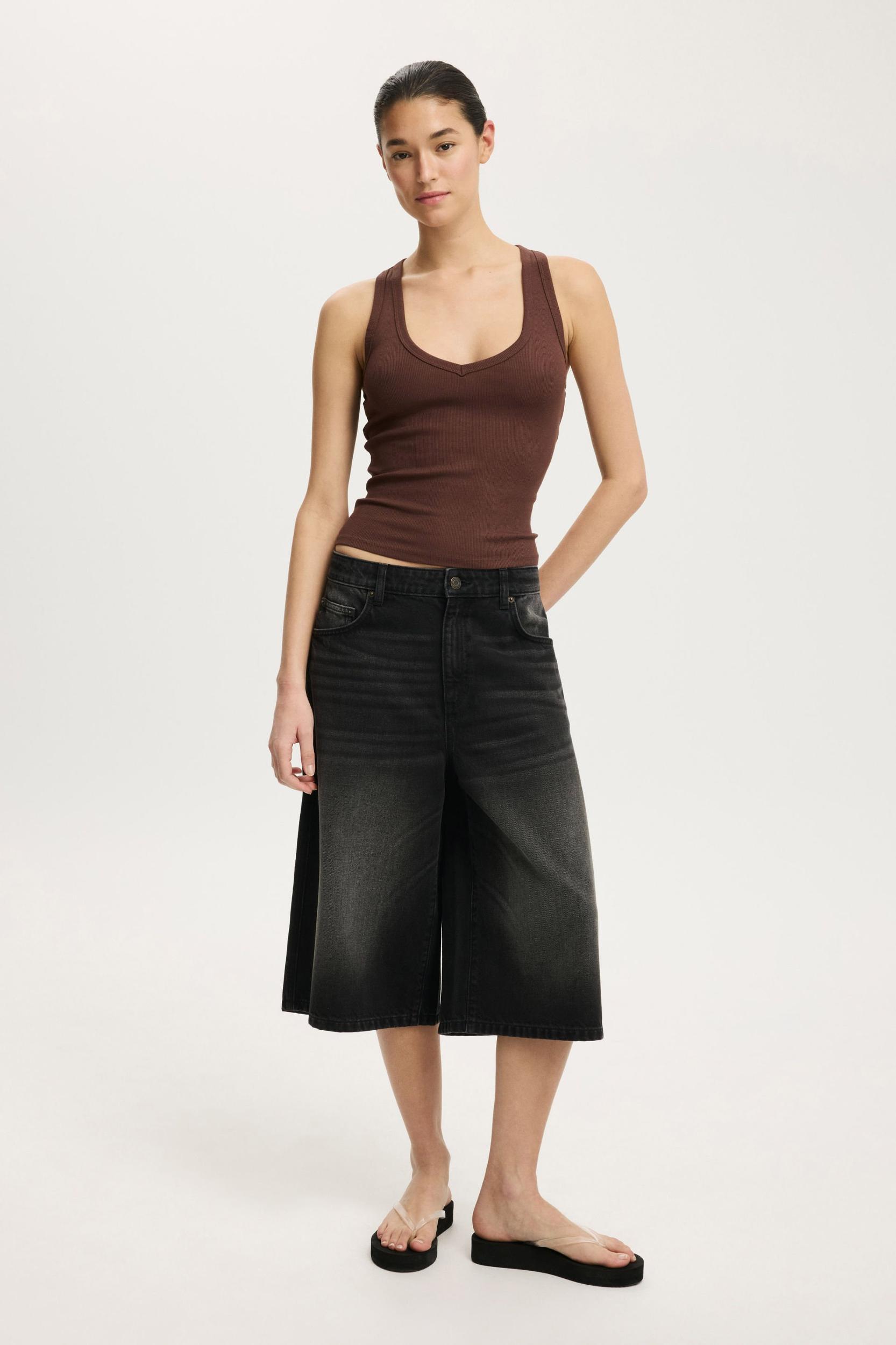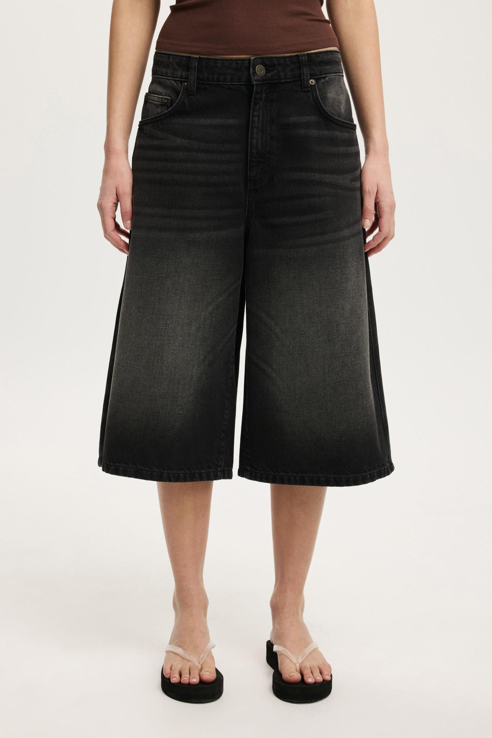Cotton On Women - 91 Baggy Denim Jort - Cargo y2k washed black