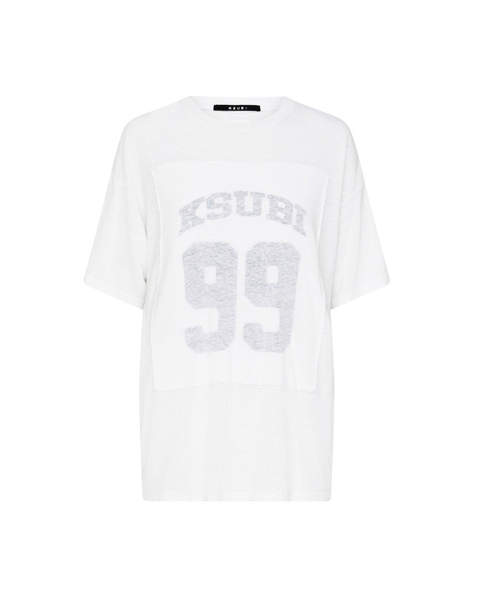 The 99 Oh G Tee Slub White is a relaxed fit t-shirt with a crew neck, short sleeves, and heritage rat tail detail. Crafted from semi-sheer white slub jersey, it features a self-applique patch with diffused Ksubi seasonal graphic, subtle knicking for a worn-in look, and Ksubi T-box branding.