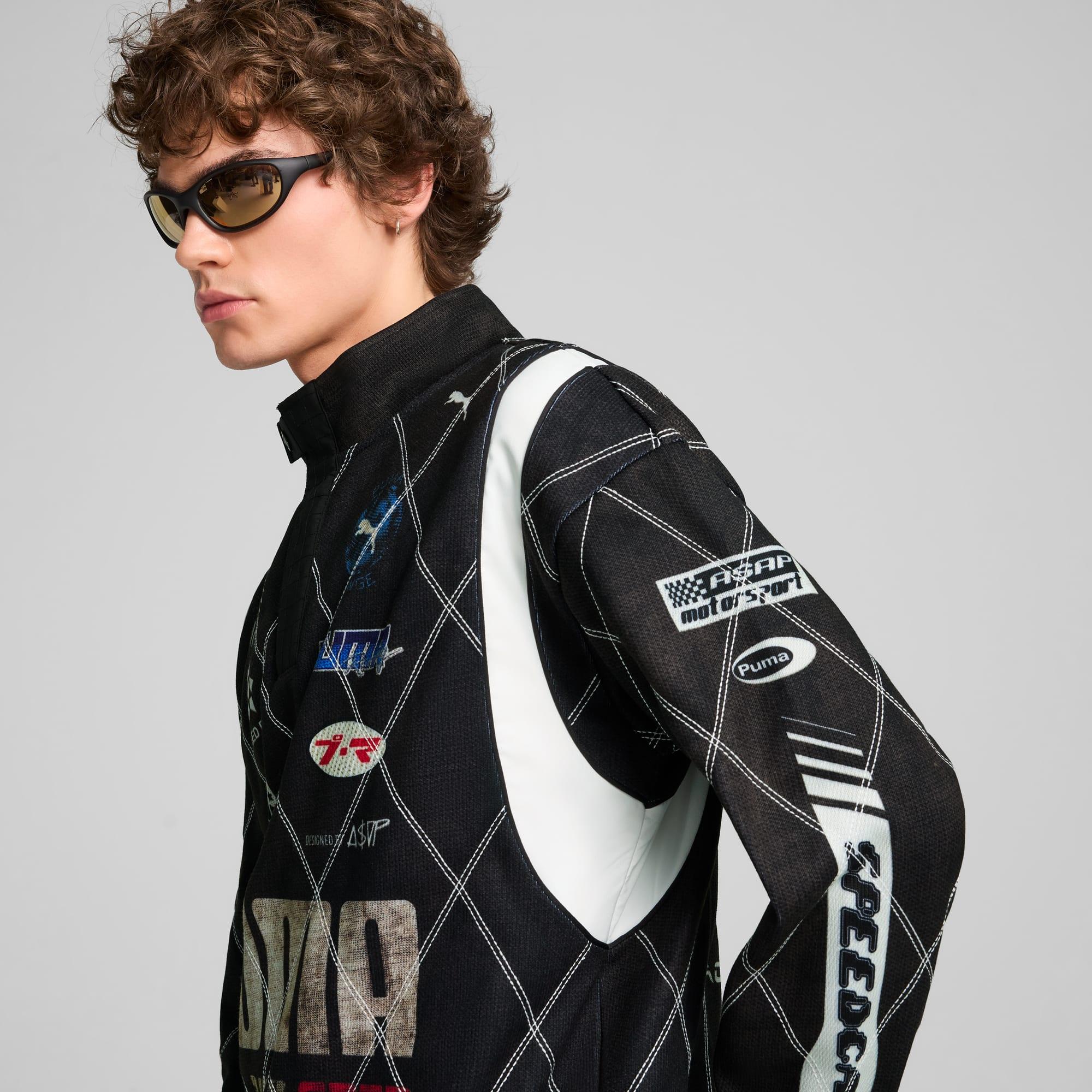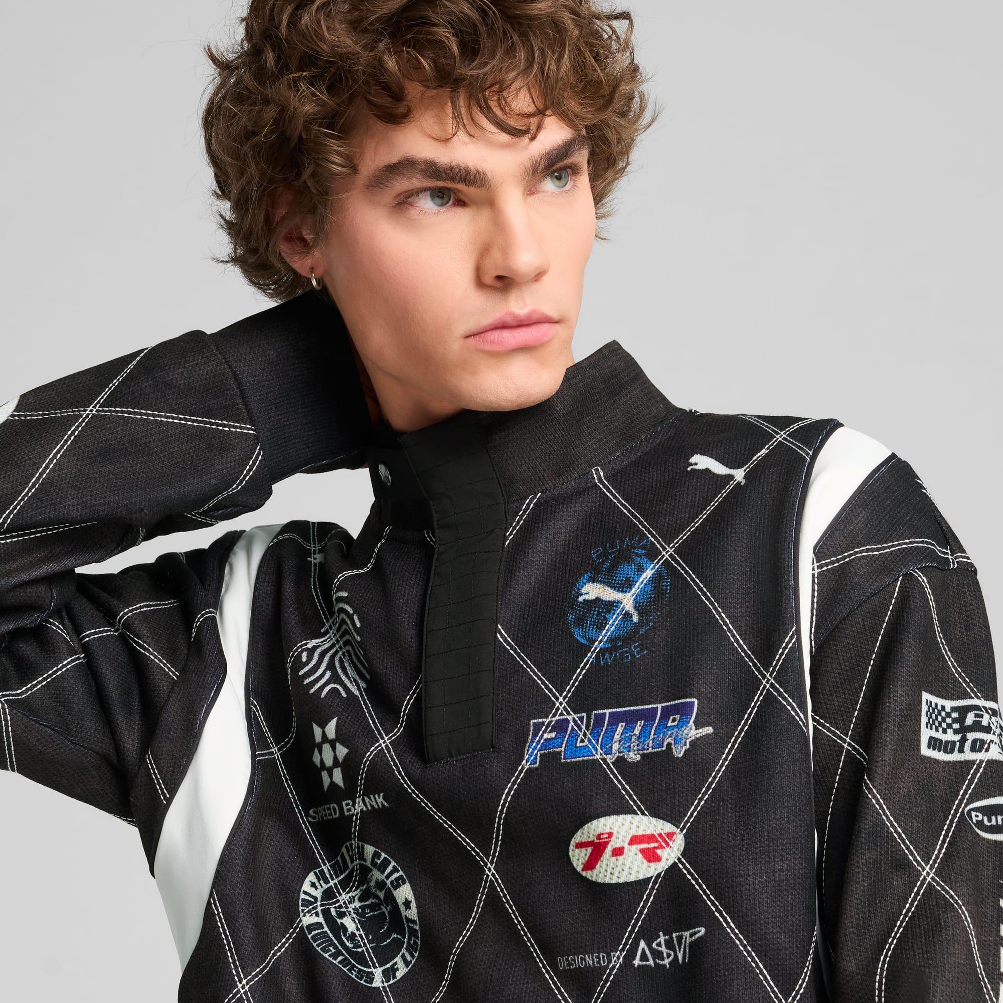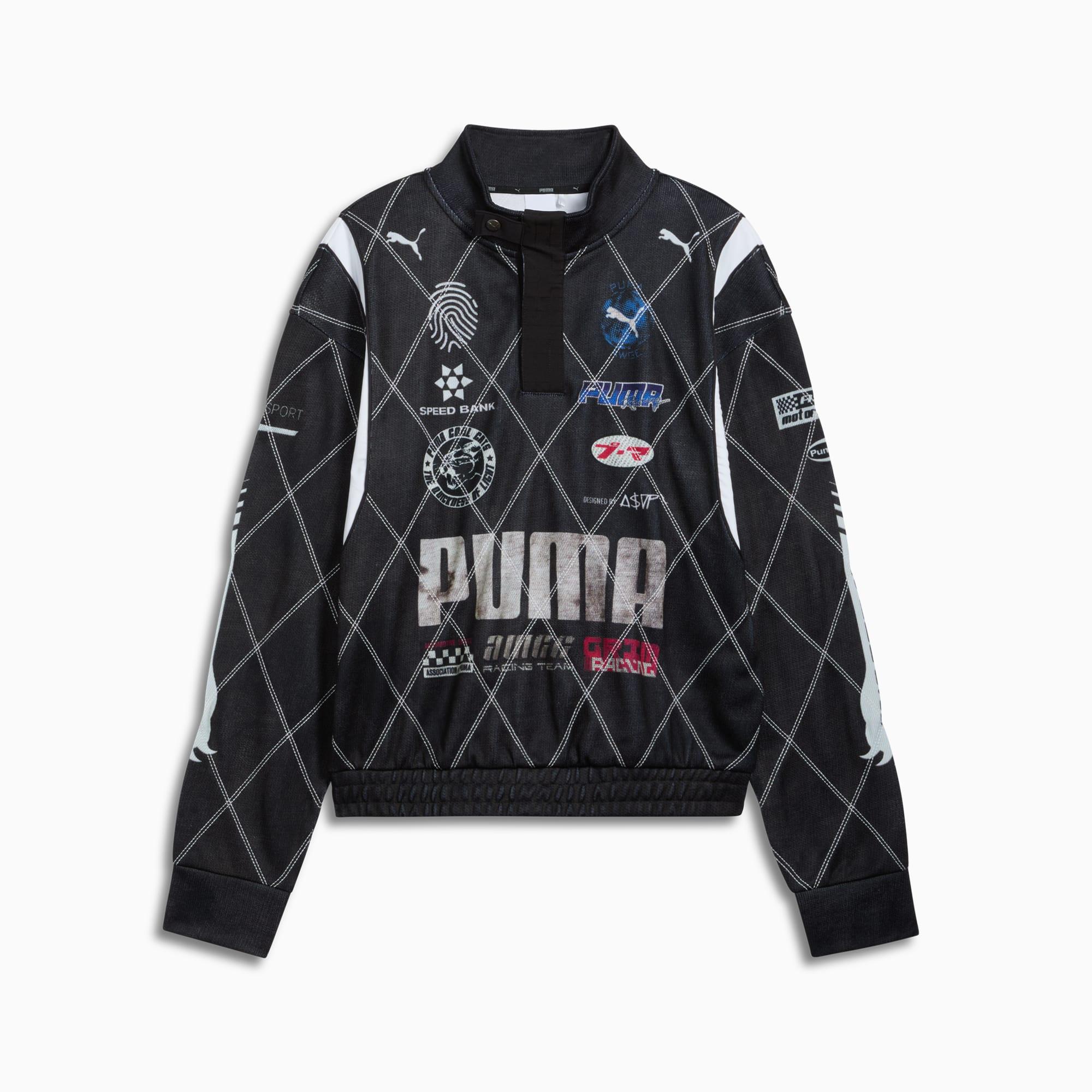 Motorsport and streetwear come together in this A$AP ROCKY x PUMA sweatshirt. With a slim fit to mimic the fit of a racing suit, this sweatshirt features quilted diamond stitching, custom PUMA graphics, and a quarter zip closure at the neck.