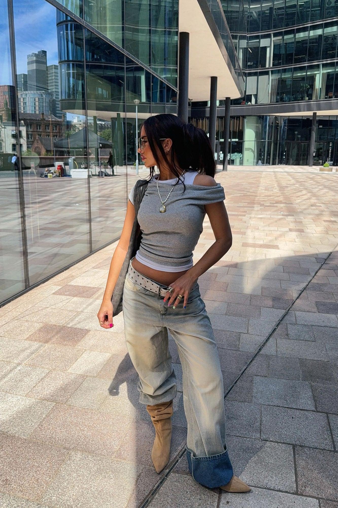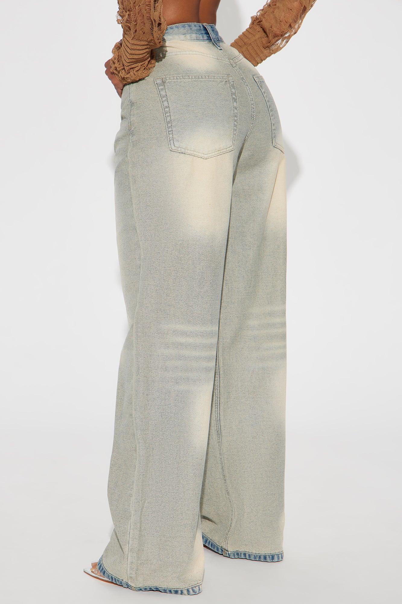Available In Vintage Wash. Wide Leg Jean 5 Pocket Tinted Drop Waist 34" Inseam 12" Rise Non Stretch Disclaimer: Due To The Specialized Wash Process, Each Garment Is Unique. Disclaimer: Runs Big, Shop One Size Down. 100% Cotton Imported
