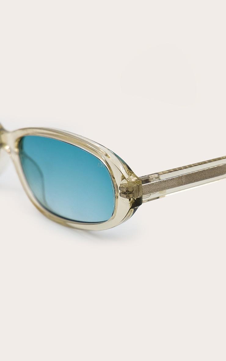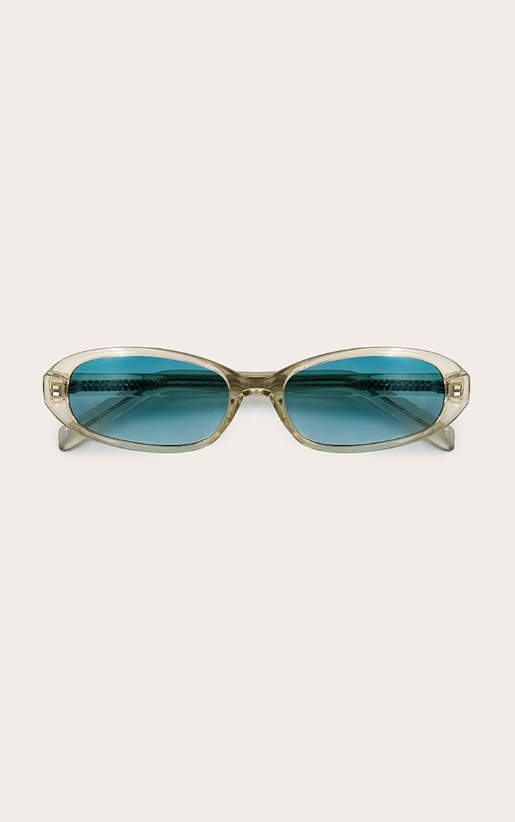 Macy is a super slim unisex model inspired by the 90s, designed with a slight upward effect, oval narrow lenses and a soft rounded frame that adds a cool casual vibe. UV 400 Protection Polycarbonate lenses High quality optical hinges Cleaning bag included Moldable temples, with metal core BPA-Free Eco friendly material More than 50% recycled materials Lens - 55mm, bridge - 18mm, temples - 145mm UV Protection Not for protection against direct sunlight. Non-prescription sunglasses. Not for protection against artificial light sources such as solaria. Not for use as eye protection against mechanical impact. Not suitable for night driving. Do not use abrasive detergents or sprays. Wipe clean only.p]:!mb-4inch>Brand: PrettyLittleThingCategory: AccessoriesProduct type: Branded SunglassesColor: ClearOccasion: Day