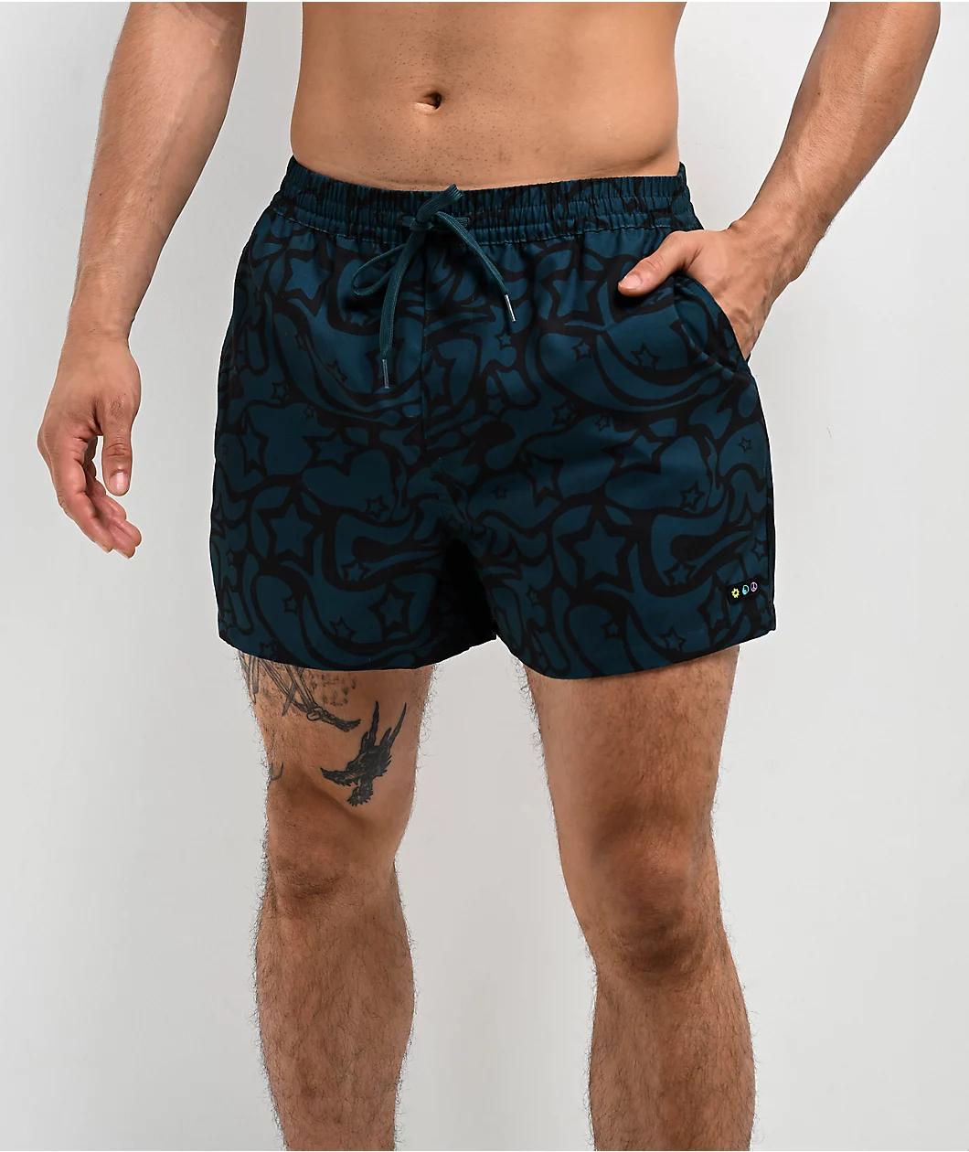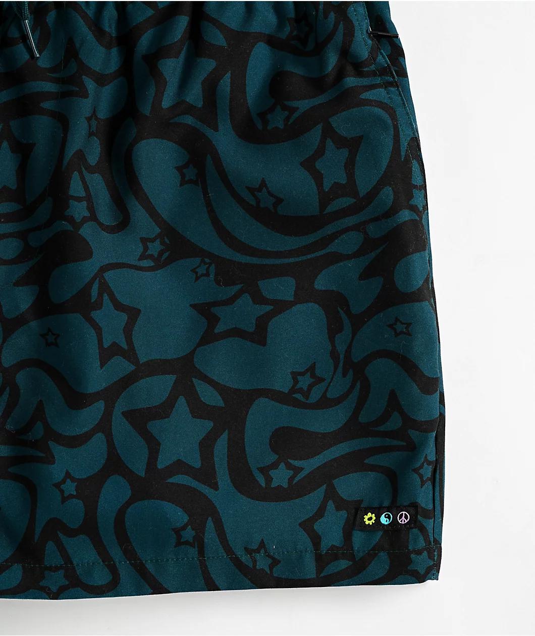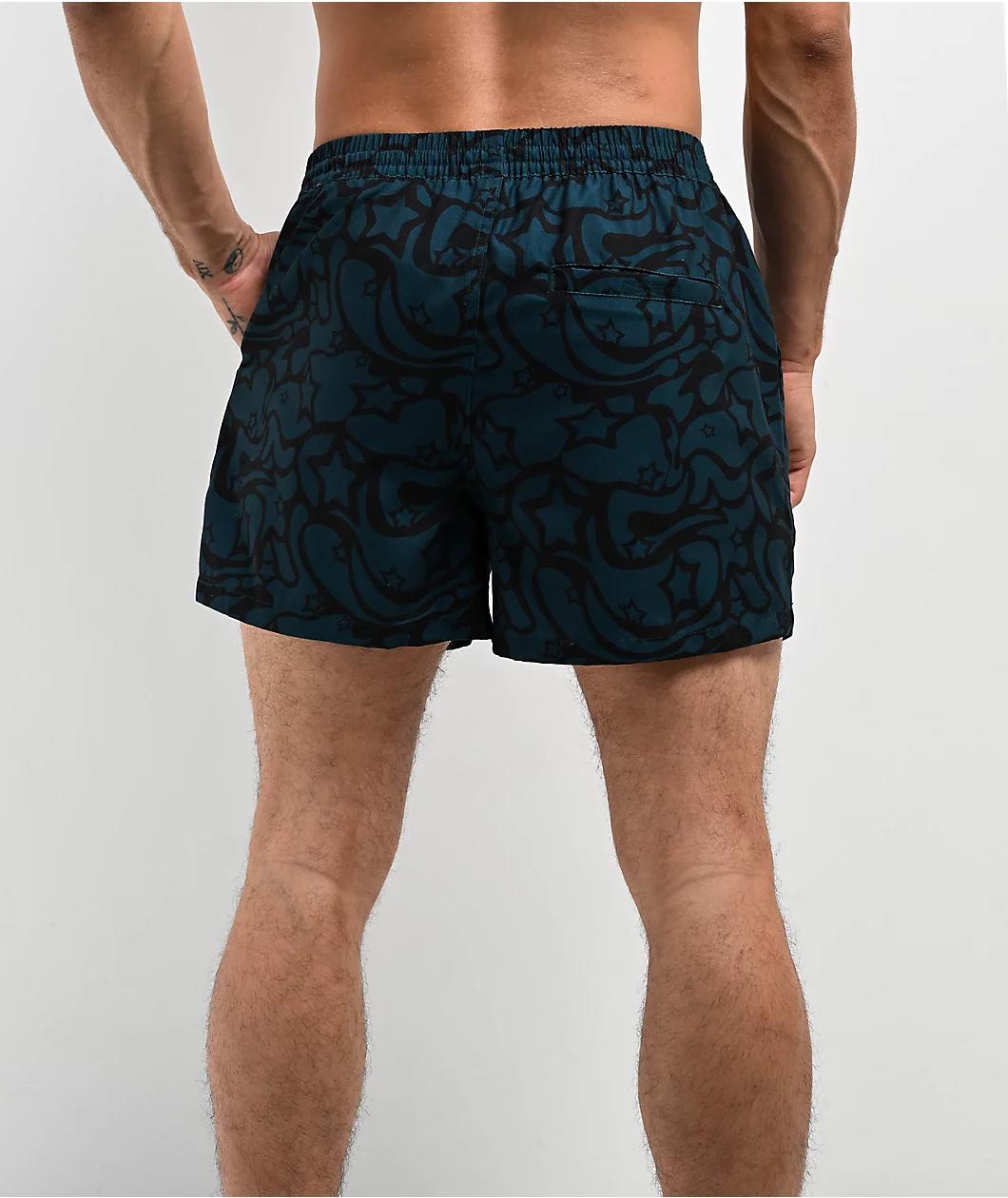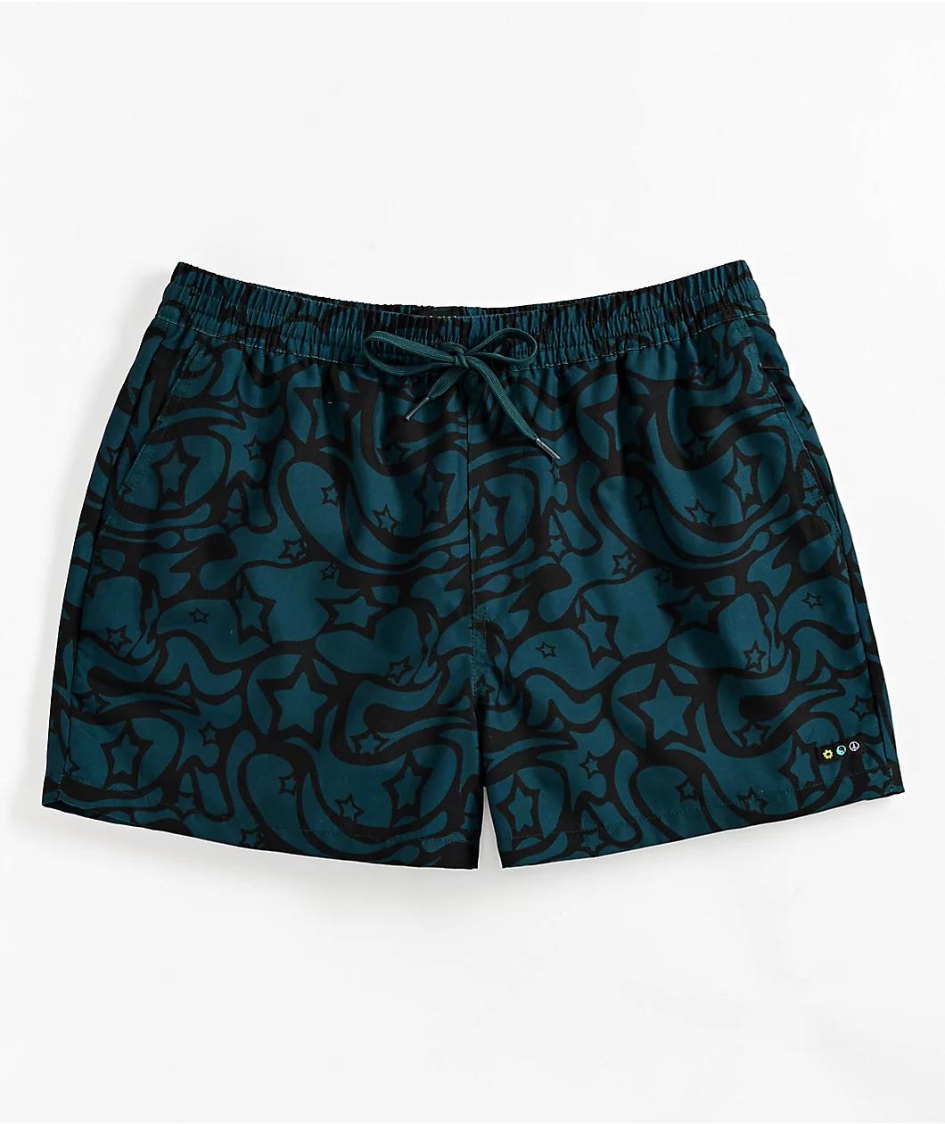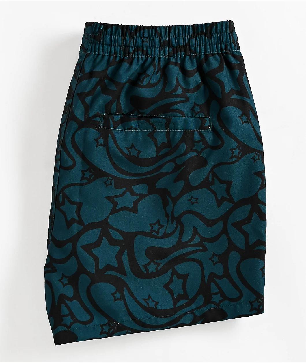 Designed with a two tone teal and black colorway from A.LAB, the Skippy Swirls board shorts arrive with a trippy 70s pattern sublimated throughout for a far-out look. Branded with a woven patch on the left leg, the mesh-lined swimwear features front