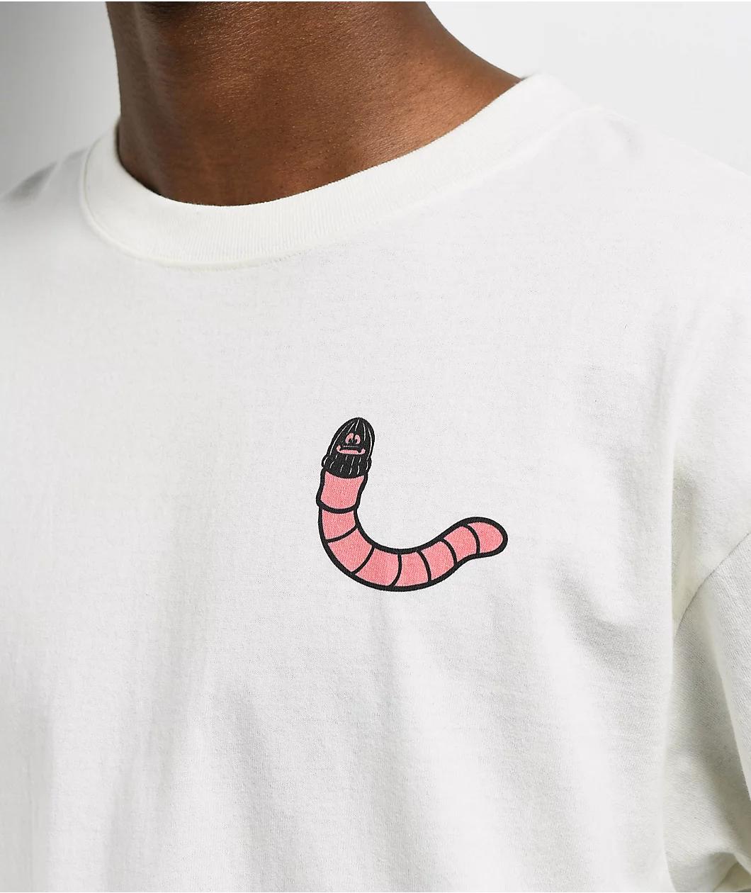 Designed in an off white cotton construction with printed graphics on the left chest and back, A.LAB welcomes the Who Is He t-shirt. Sporting a minimalist front with a cartoon worm wearing a ski-mask, the back of the tee offers a more detailed look w