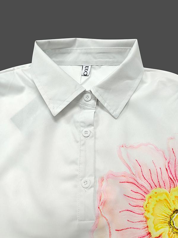A-Line Flared Sleeves Floral Printed Split-Joint Split-Side Lapel Collar Maxi Dresses Shirt Dress