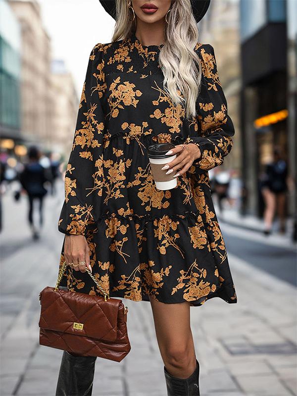 Step into spring with this charming mini dress featuring an A-line silhouette and high-waisted design. The elasticity of the fabric ensures a comfortable fit, while the vibrant flower print adds a touch of femininity. The split-joint design enhances movement, and the round neck completes the classic look.