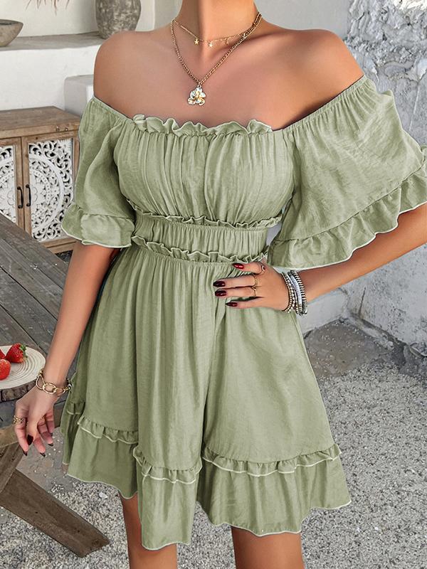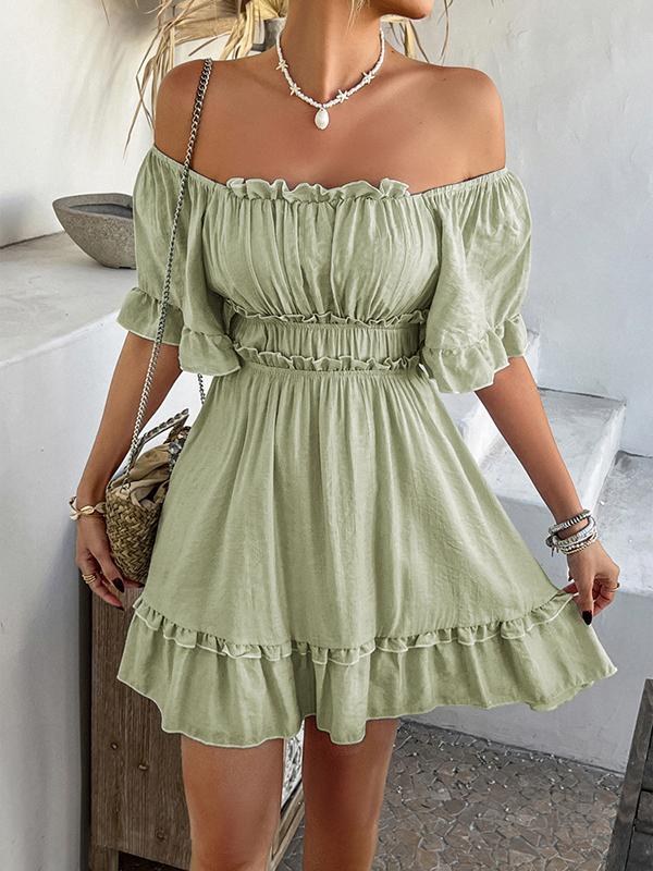 Embrace effortless style with our A-Line High Waisted Elasticity Pleated Ruffle Trim Solid Color Square-Neck Mini Dress. Featuring a flattering square-neck design and playful ruffle trim, this dress is perfect for any casual or semi-formal occasion. Shop now for fast shipping and exclusive discounts!
