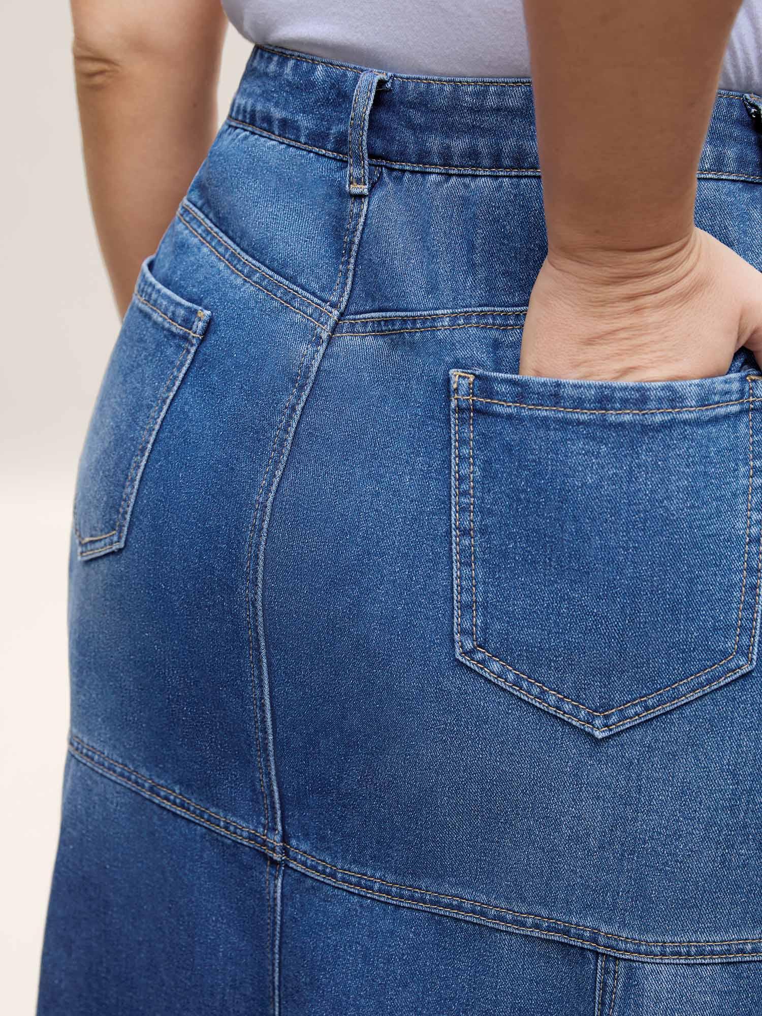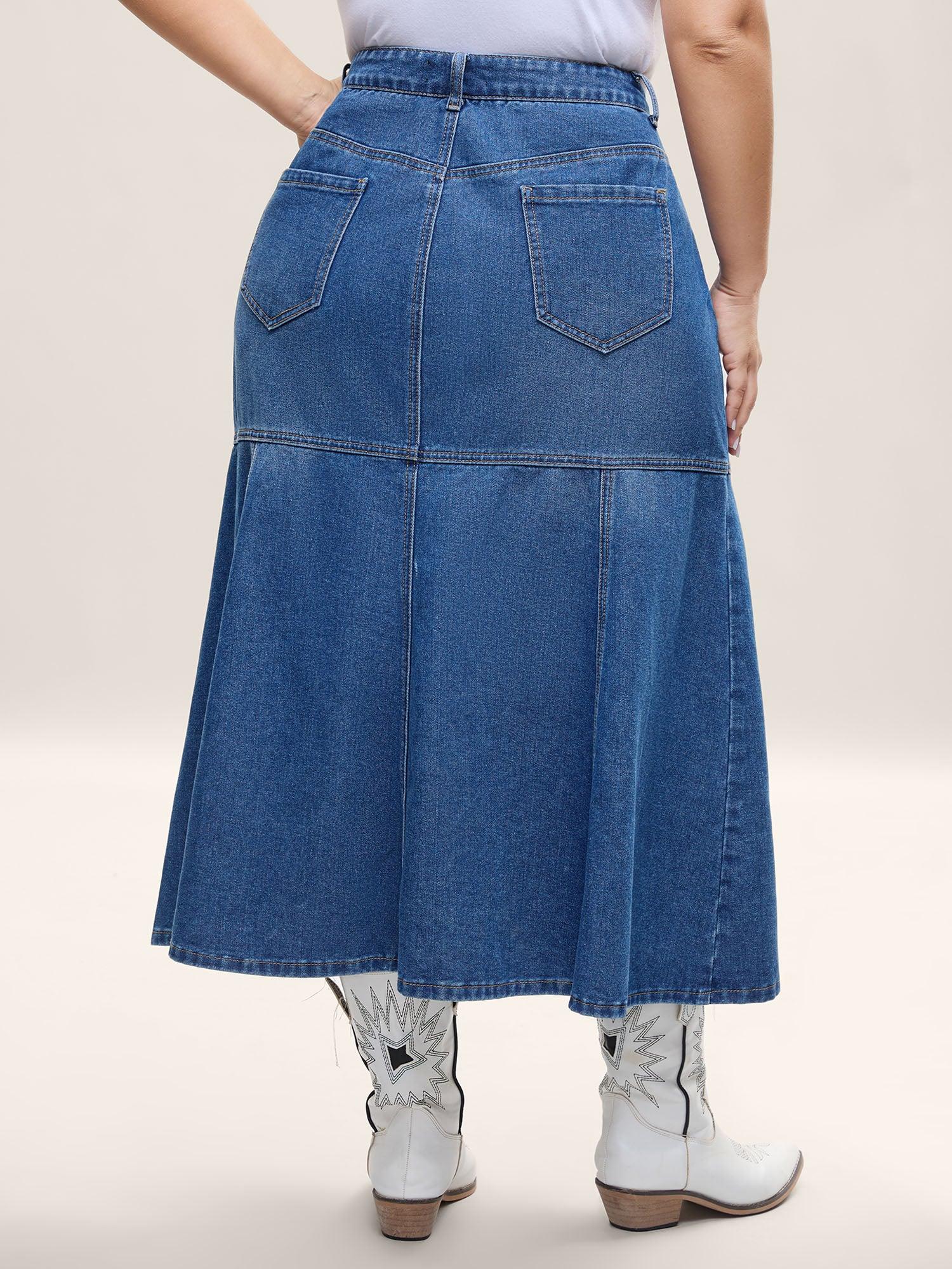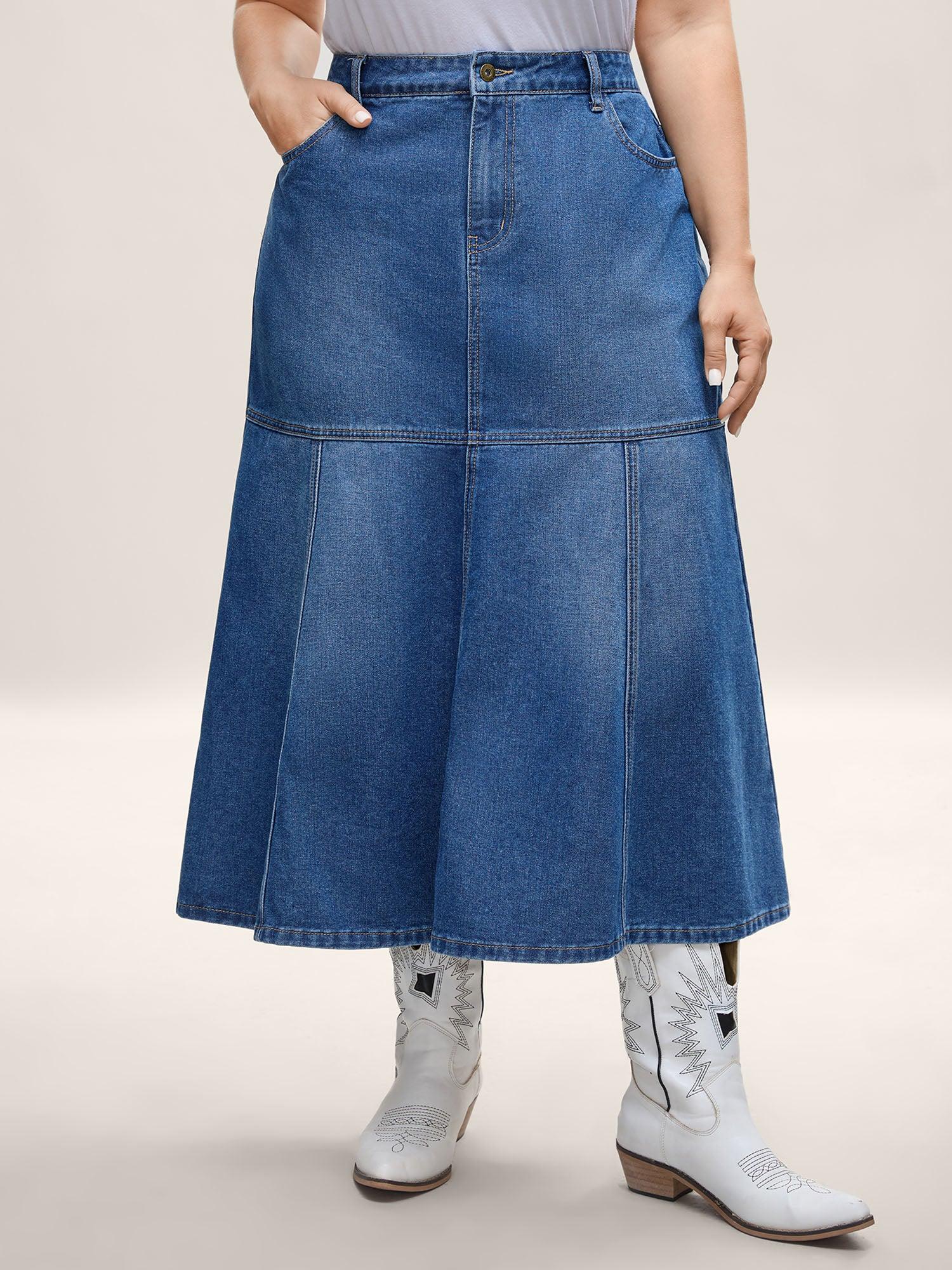 Shop A-Line Seamed Maxi Denim Skirt now and redefine your style with confidence at BloomChic. Tailored for mid and plus-size women. This trendy Denim Women, sizes 10-30. Color:Midblue;Prints:Non;Pocket:Slanted pocket;Belt:No-belt;Closure Type:Zipper;Wash:Medium Wash