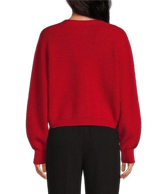 From A Loves A, this sweater features: Wool Blend Sweater Knit Fabrication Cardigan Silhouette Detachable Rhinestone Bow Snaps V-neckline Long Sleeves with Ribbed Cuffs Modern Fit Cropped Length Straight Hemline Snap Front Closure Approx. 20" in length Polyester/acrylic/wool/spandex Remove Rhinestone Bow Attachments from snaps and secure snaps prior to wash, turn garment inside out, machine wash on cool cycle, promptly remove from wash, lay flat to dry and reshape. Imported. Dillard's Exclusive