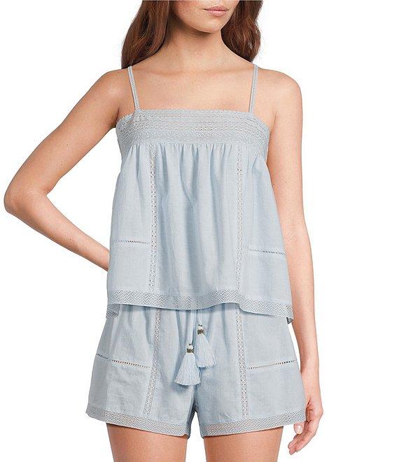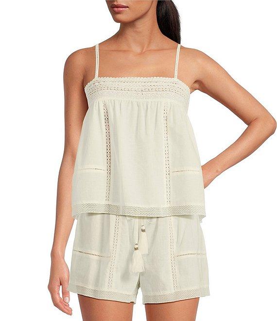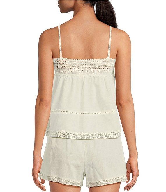 From A loves A, this camisole features:Woven FabricationLace DetailLightweight FabricationStraight NecklineSpaghetti StrapPullover ConstructionCami Blouse SilhouetteFlounce HemlineSlightly Cropped LengthApprox. 15.25" HPS in LengthCottonMachine wash on cold gentle cycle, wash with similar colors and fabrications, promptly remove from wash, tumble dry on low, use warm steam iron if needed.Imported.Dillard's ExclusiveIntroducing a chic ultra casual capsule for A Loves A! These pieces offer lightweight fabrications in silhouettes that are simple yet sophisticated. We are excited to introduce this capsule of effortless true daytime layering outfits with can be worn in all aspects of the A Loves A lifestyle!
