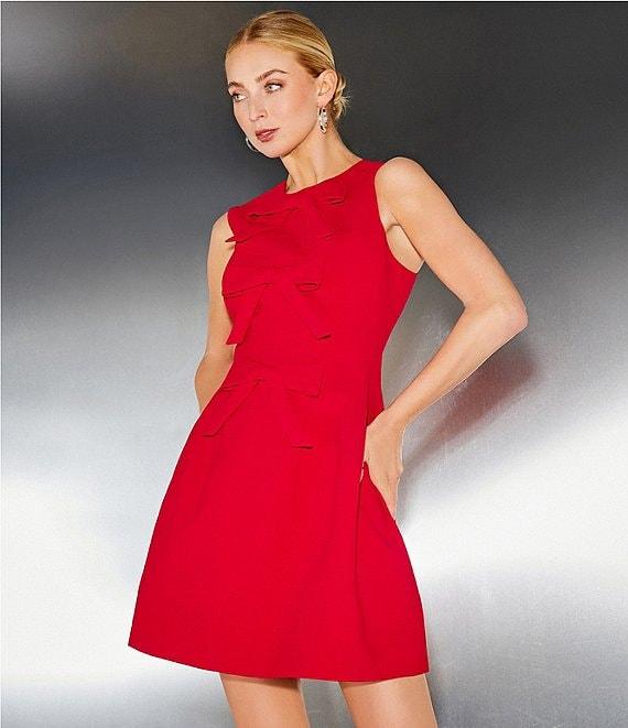 From A Loves A, this dress features: Woven fabrication 3 Self bow details Round neckline Sleeveless Pullover construction Back center zipper with hook & eye closure A-Line silhouette Fully lined Straight hemline Approx. 35" HPS in length Polyester Turn dress inside out prior to wash, machine wash on cold gentle cycle, wash with similar colors and fabrications, tumble dry on low, use steam iron on low if needed. Imported. Dillard's Exclusive