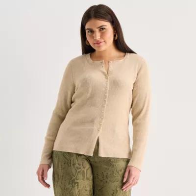 a.n.a Womens Crew Neck Long Sleeve Button Plus Cardigan