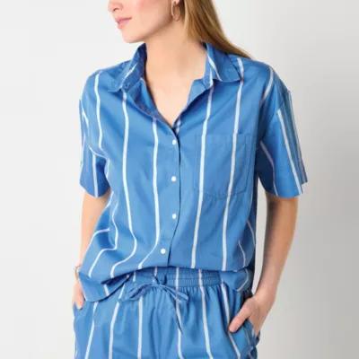 a.n.a Womens Short Sleeve Regular Fit Button-Down Shirt