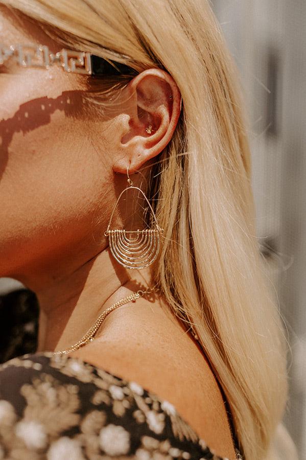 A unique twist on a classic gold earring, our pretty 'A Phone Call Away Earrings' feature dangling layered half circles!