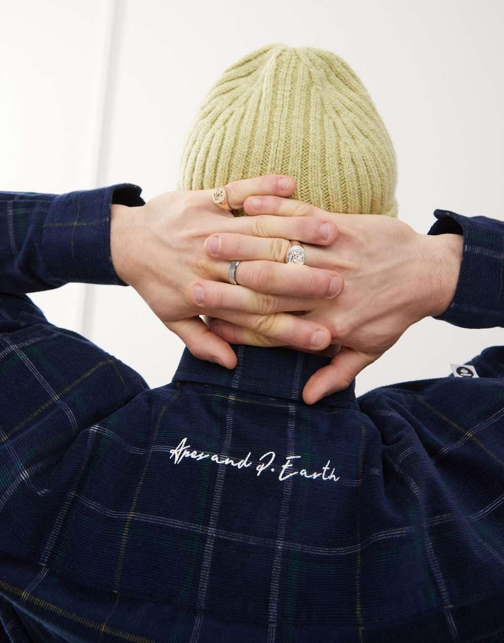 Aape By A Bathing Ape checked logo long sleeve shirt in navy & green