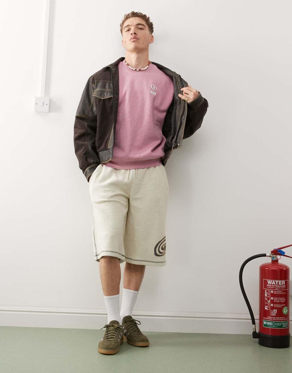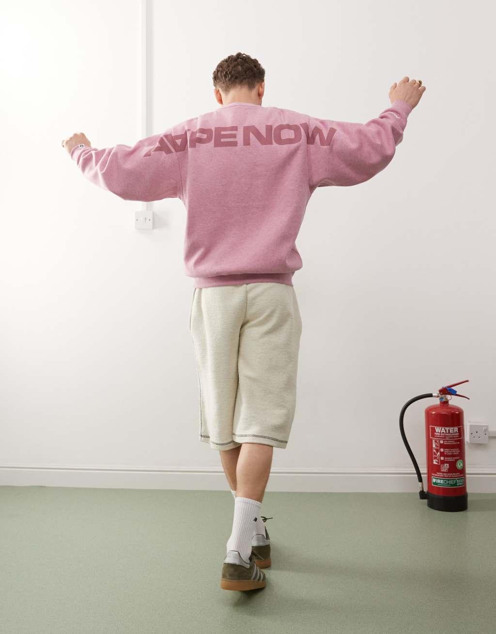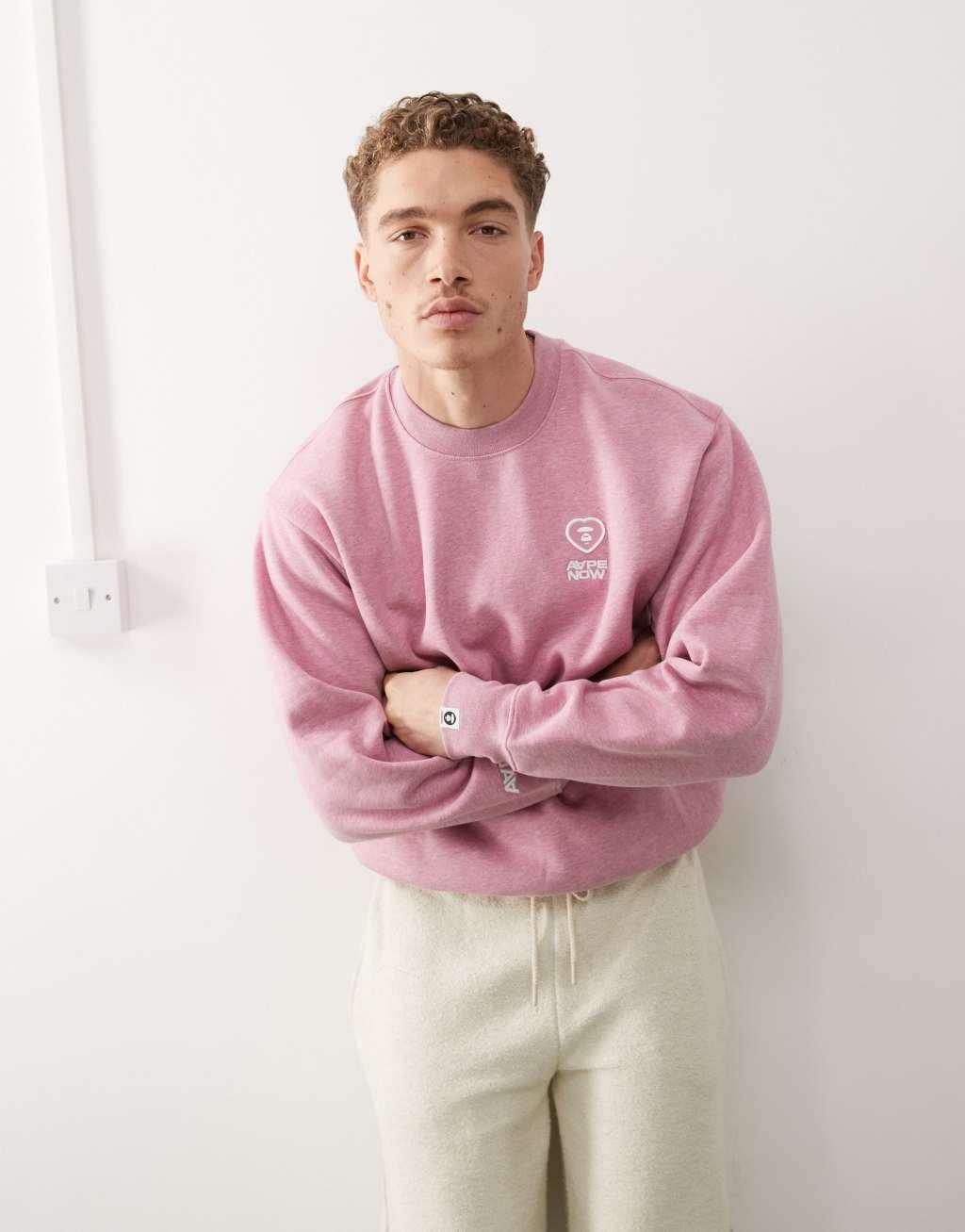 Aape By A Bathing Ape heart crew neck sweat in pink