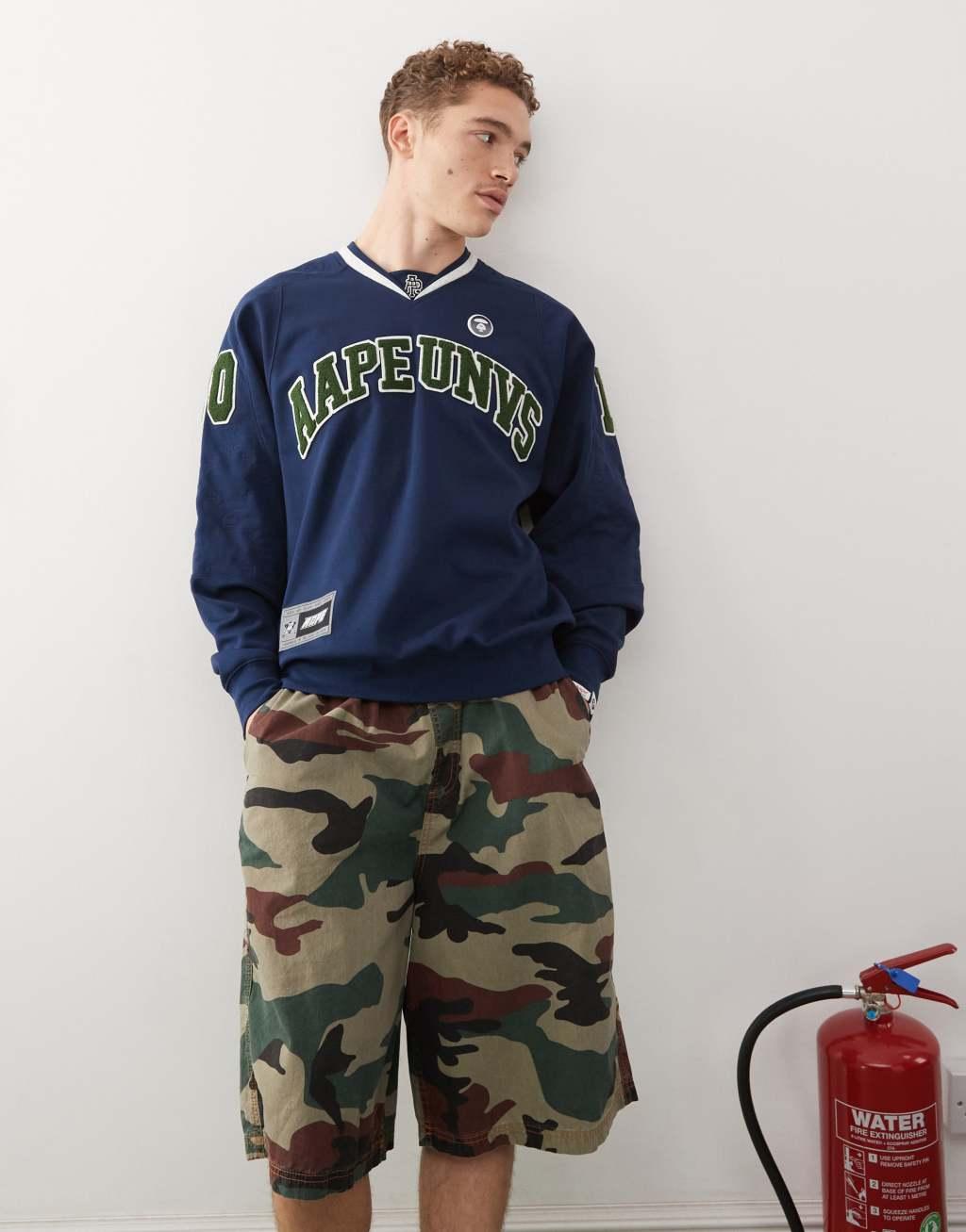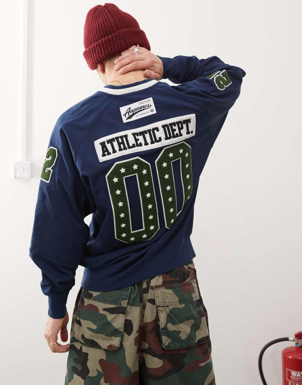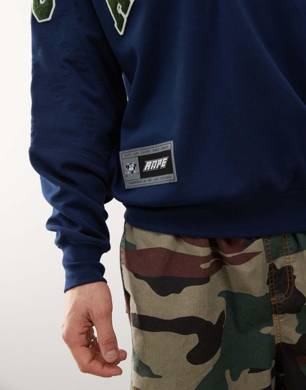 Aape by A Bathing Ape logo college sweatshirt in navy
