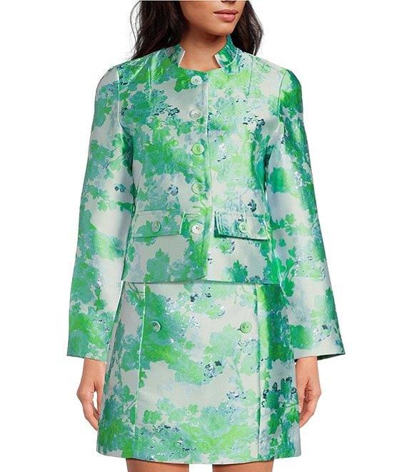 Abbey Glass Metallic Brocade Button Front Onassis Jacket