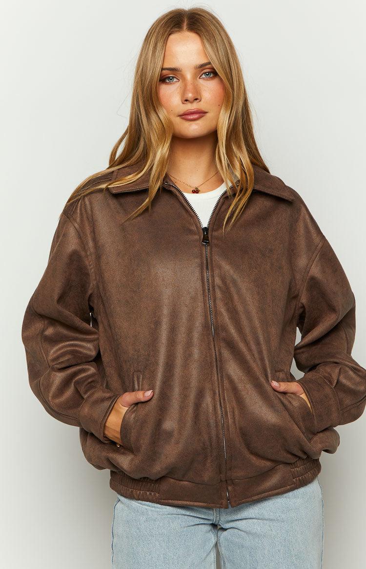 Brown Faux Suede BomberJacket How to style: A staple wardrobe necessity! The perfect jacket to complete any look. Pair with shorts and a top for a casual day look or a super cute mini dress and heels for a chic night look. Features: Collared neckline Faux suede outer Centre zip Two front pockets Standard length Non-stretch material Heavy weight fabric Lined Elastic bottom hem Sleeve cuffs with button