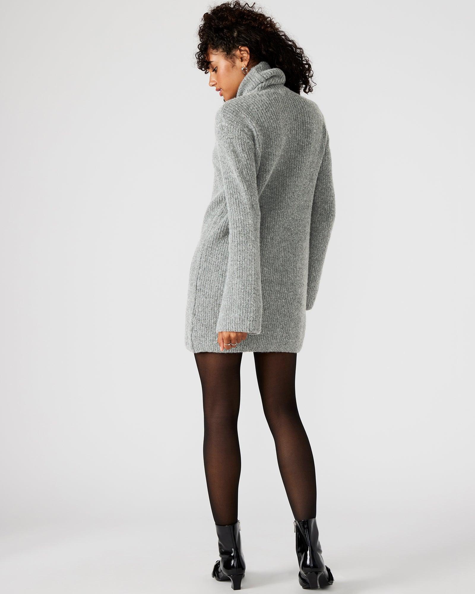 The ABBIE sweater dress is expertly crafted with a turtleneck and flare sleeves and offers a relaxed yet stylish fit. The soft brushed material provides warmth and comfort, making it the perfect mini dress for cooler weather. Elevate your wardrobe with this versatile and chic pullover dress. Mini sweater dress Turtleneck pullover style Flared long sleeves 98% polyester 2% elastane Hand wash Carla is 5ft 9in and is wearing a size large Lilia is 5ft 9in and is wearing a size small Imported