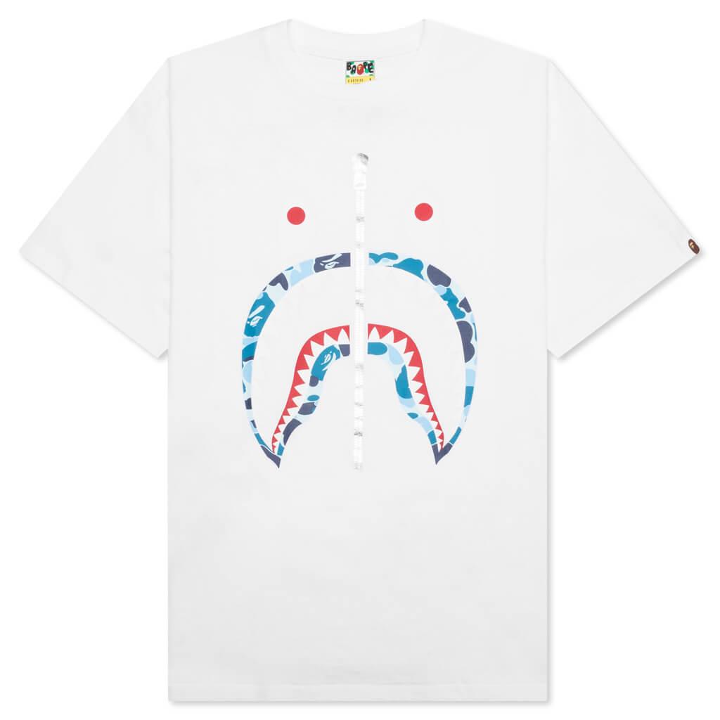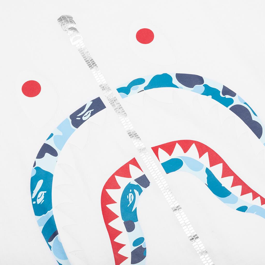 Considered one of Japan’s original streetwear brands, BAPE welcomes the ABC Camo Shark Tee into its newest collection of apparel. Making a statement in any wardrobe, the cotton-cut design features a crew neckline + straight hem. The garment sports the classic array of bold artwork, a signature staple for BAPE. 100% Cotton Crew neckline BAPE branding Printed graphics Style No: 001TEJ801013MWH9 1J30 110 007 WHITE BLUE