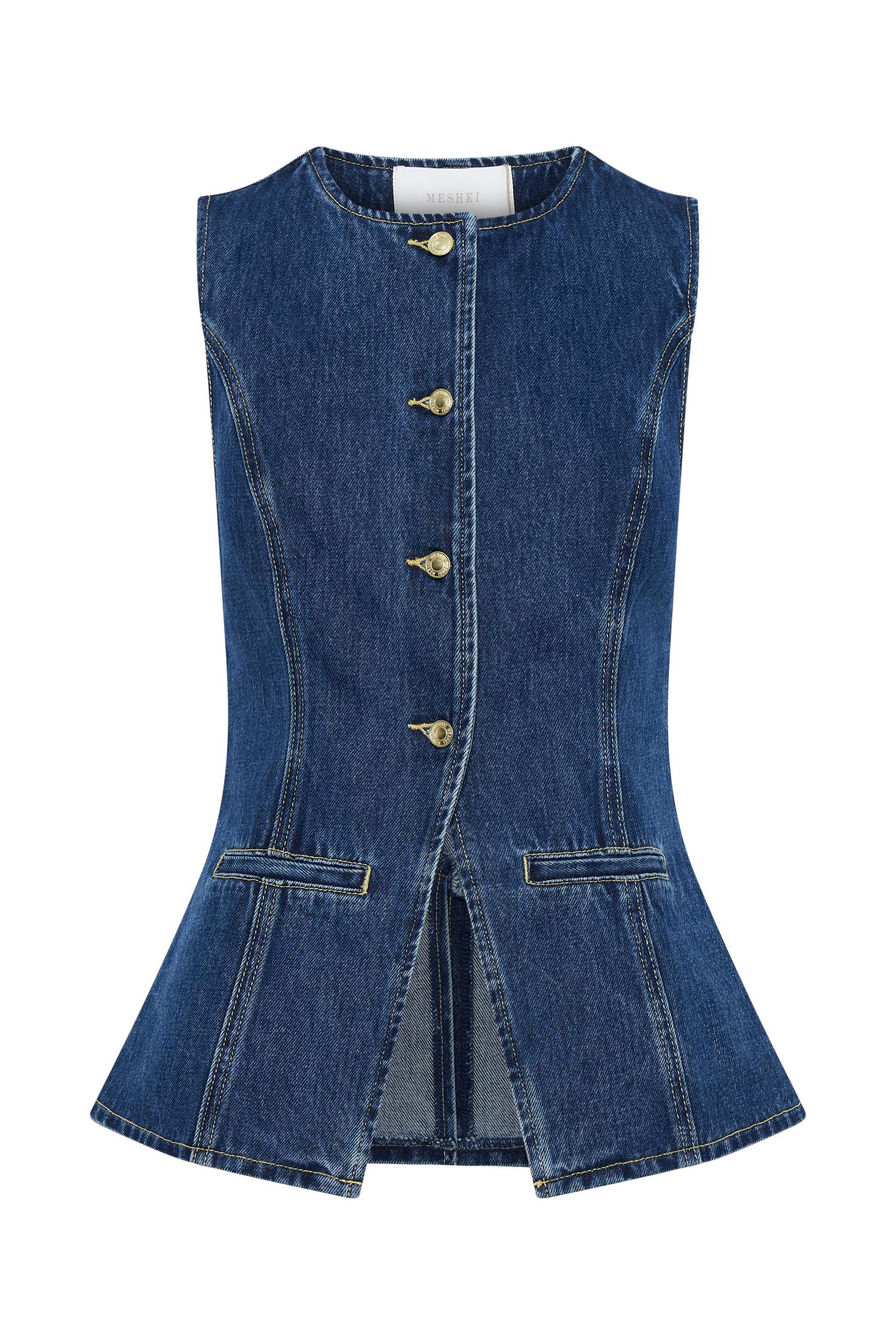 This style is designed to be fitted, please size up for a more relaxed look. Hands down staple. Presenting the ABEL Denim Button Up Top, a modern essential for your wardrobe rotation. Boasting a round neckline and a convenient centre front button closure, this sleeveless denim button up top offers a versatile and chic aesthetic. The addition of front mock pockets adds a hint of utilitarian flair, while princess seams ensure a flattering silhouette. This longline vest is perfect for layering over various outfits, whether you're going for a relaxed weekend look with the Abel Denim Shorts or adding a touch of sophistication by layering it over a dress. Versatile and stylish, the Abel Denim Button Up Top is destined to become a key piece in your wardrobe lineup.