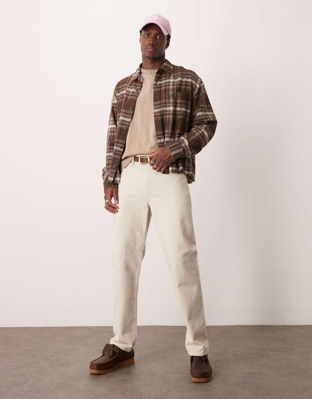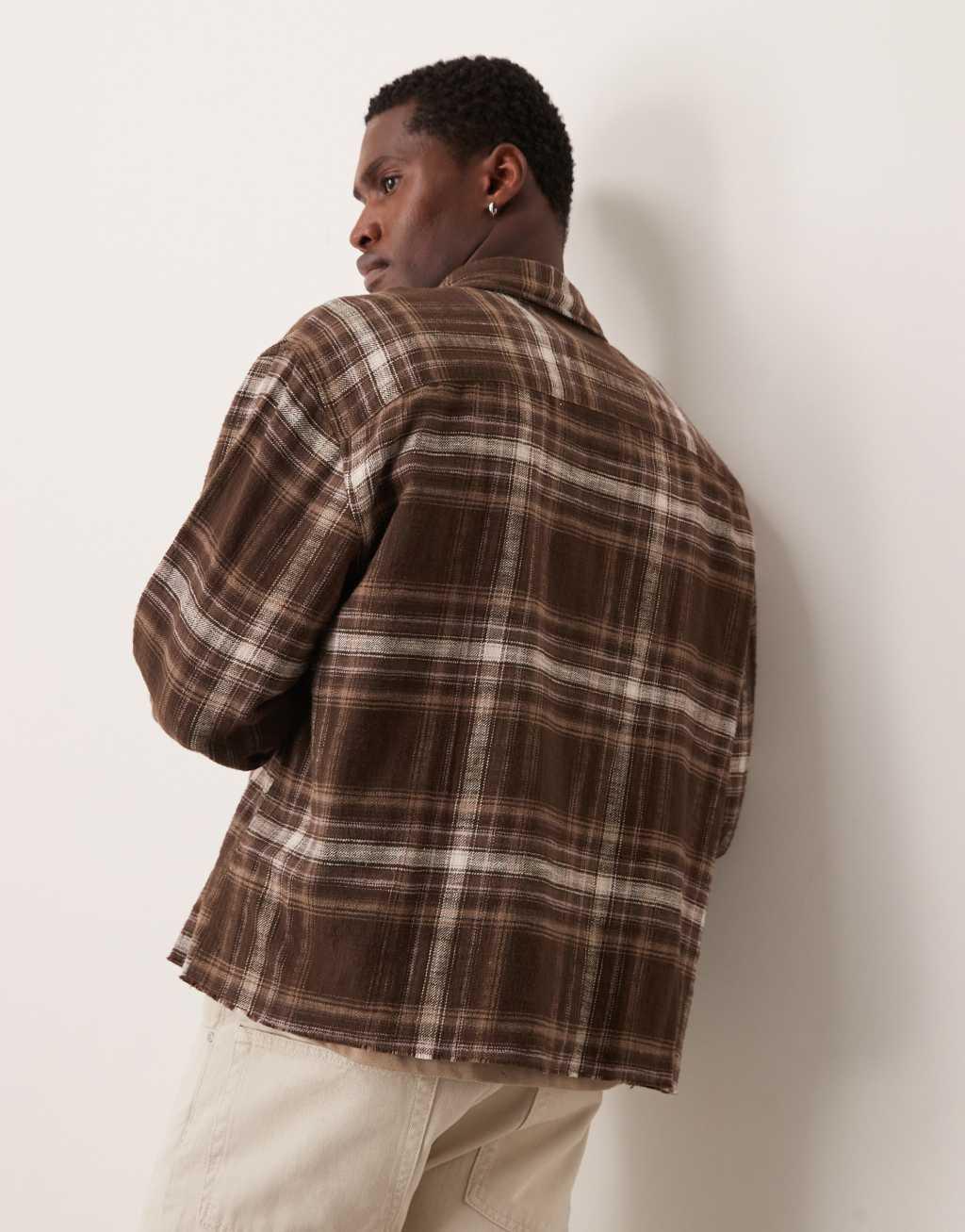 Abercrombie & Fitch cropped slub flannel plaid overshirt in brown