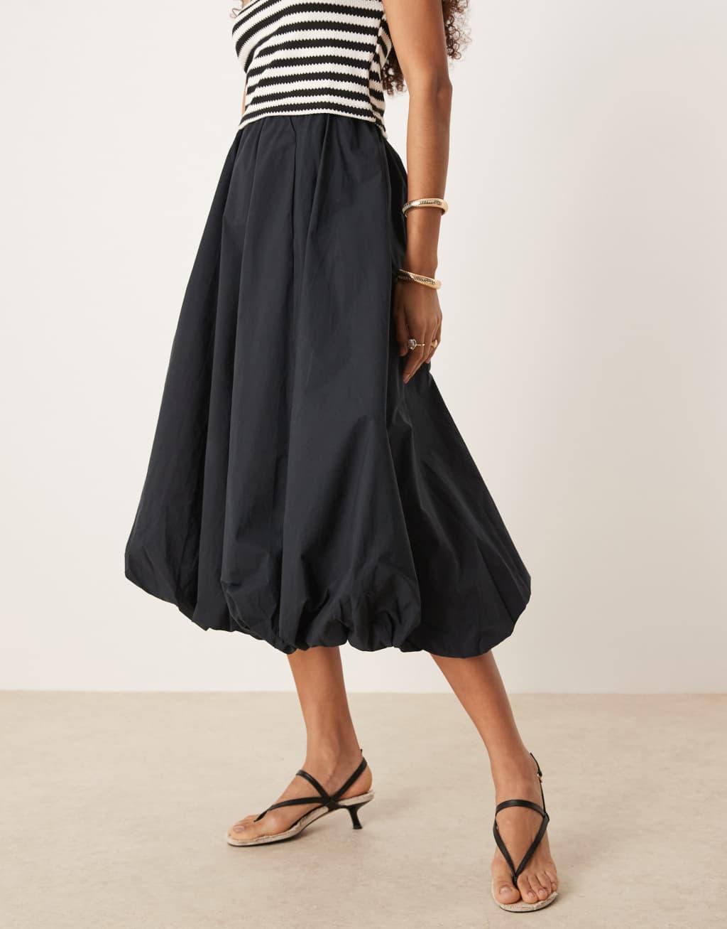 Abercrombie & Fitch high rise bubble hem maxi skirt in black