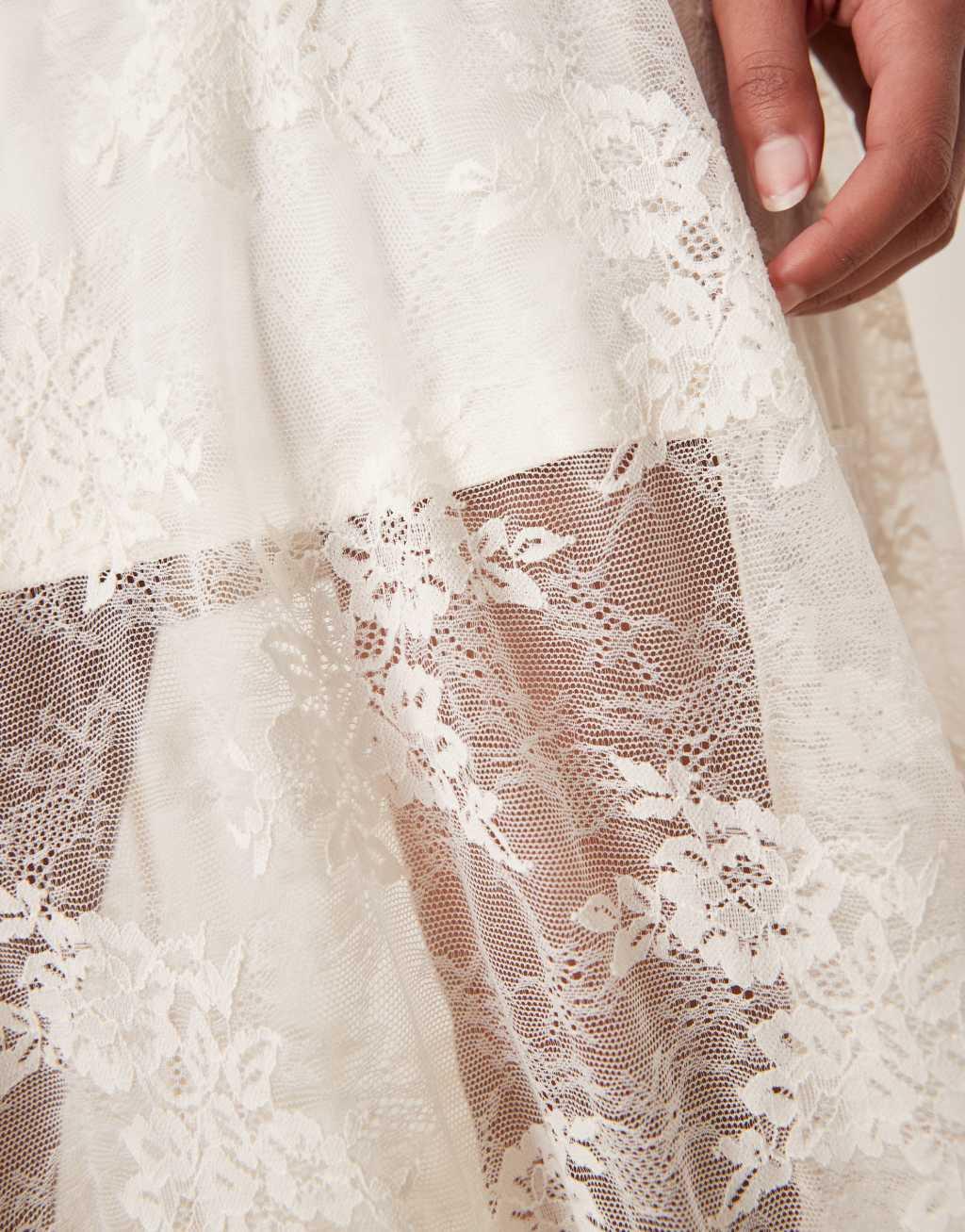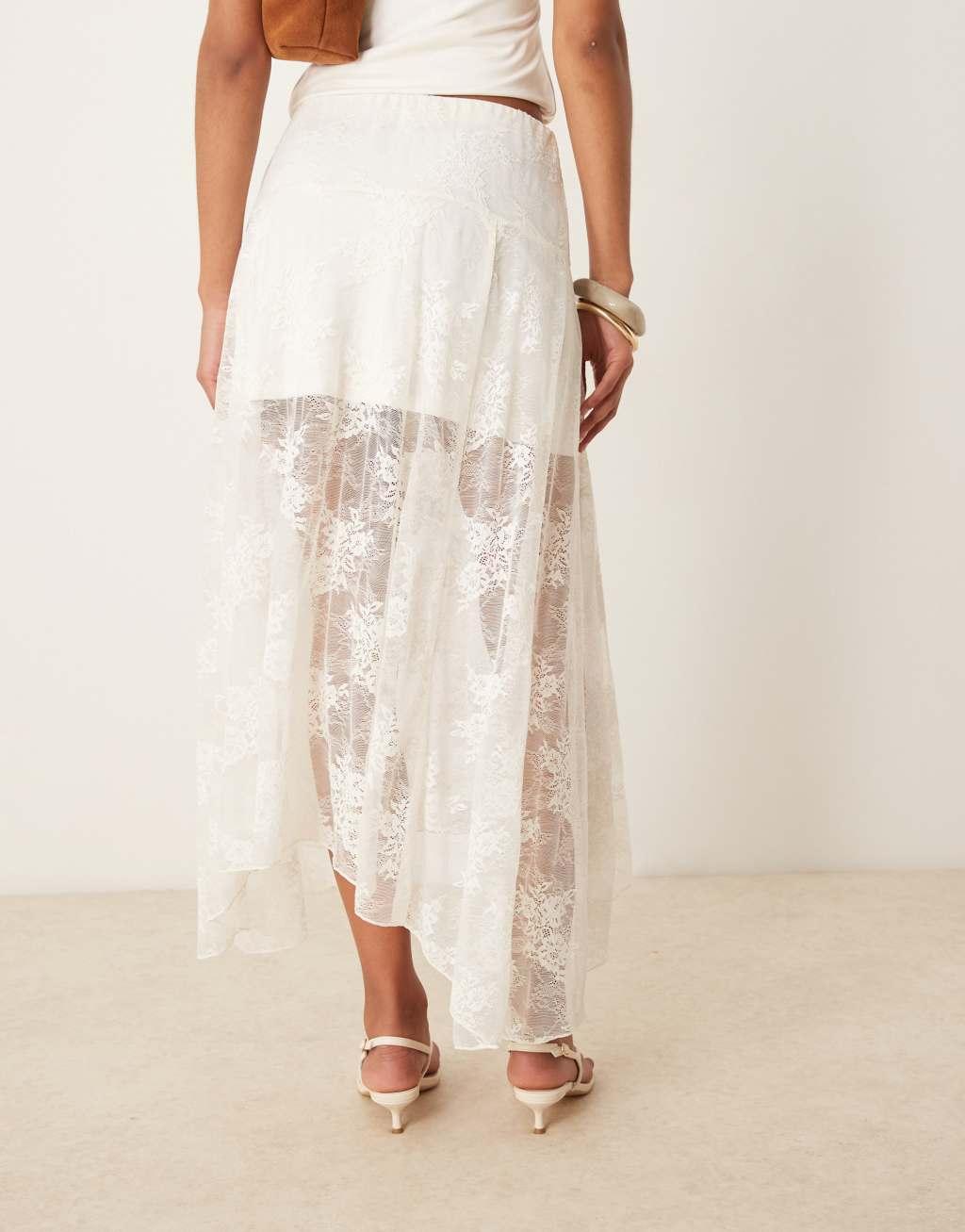 Abercrombie & Fitch lace detail flowy maxi skirt in white