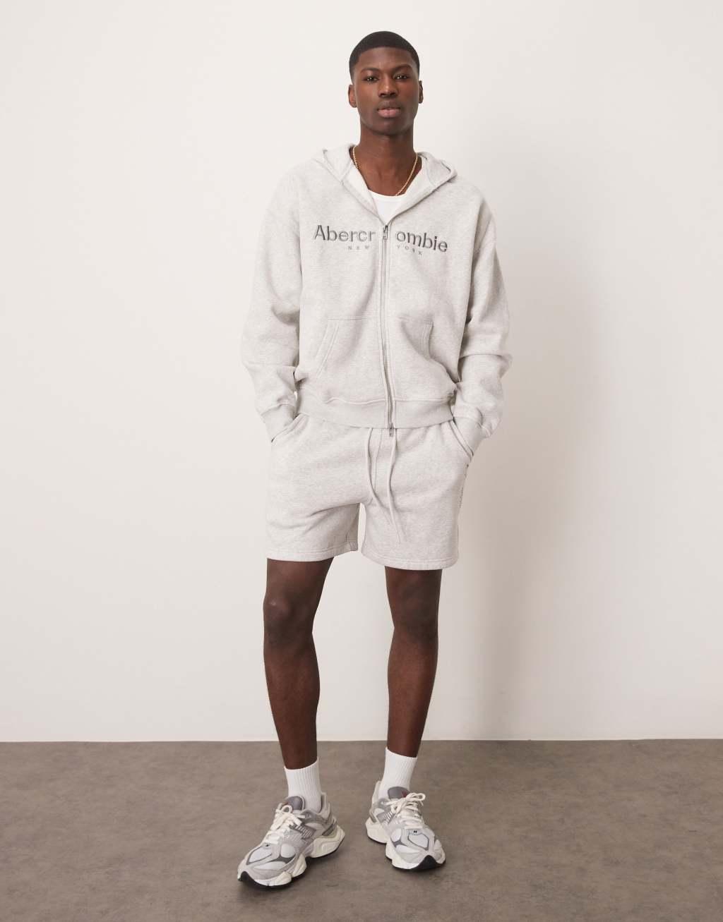 Abercrombie & Fitch zip through logo hoodie in light gray