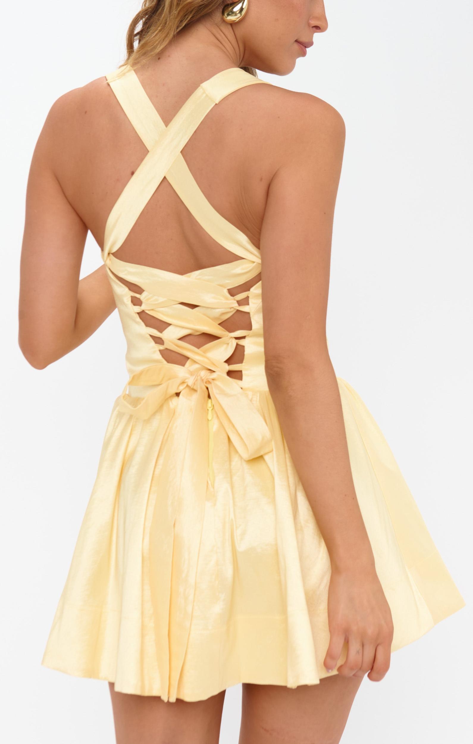 FIT TIP: This is our shorter mini dress length Looking for your next go-to cocktail dress? The Abigail Mini is it! Featuring a drop-waist corset and lace-up back for a cinched, custom fit, this flirty little number is as flattering as it gets. Just add heels and a clutch, and you’re ready to turn heads!