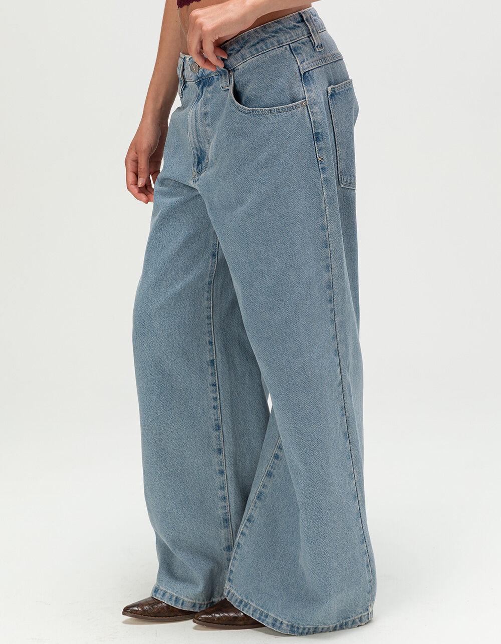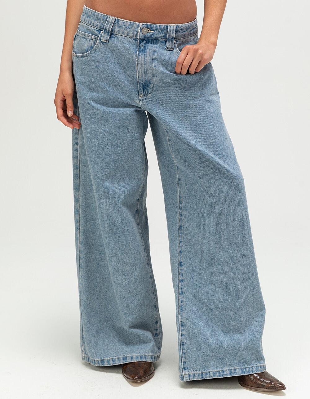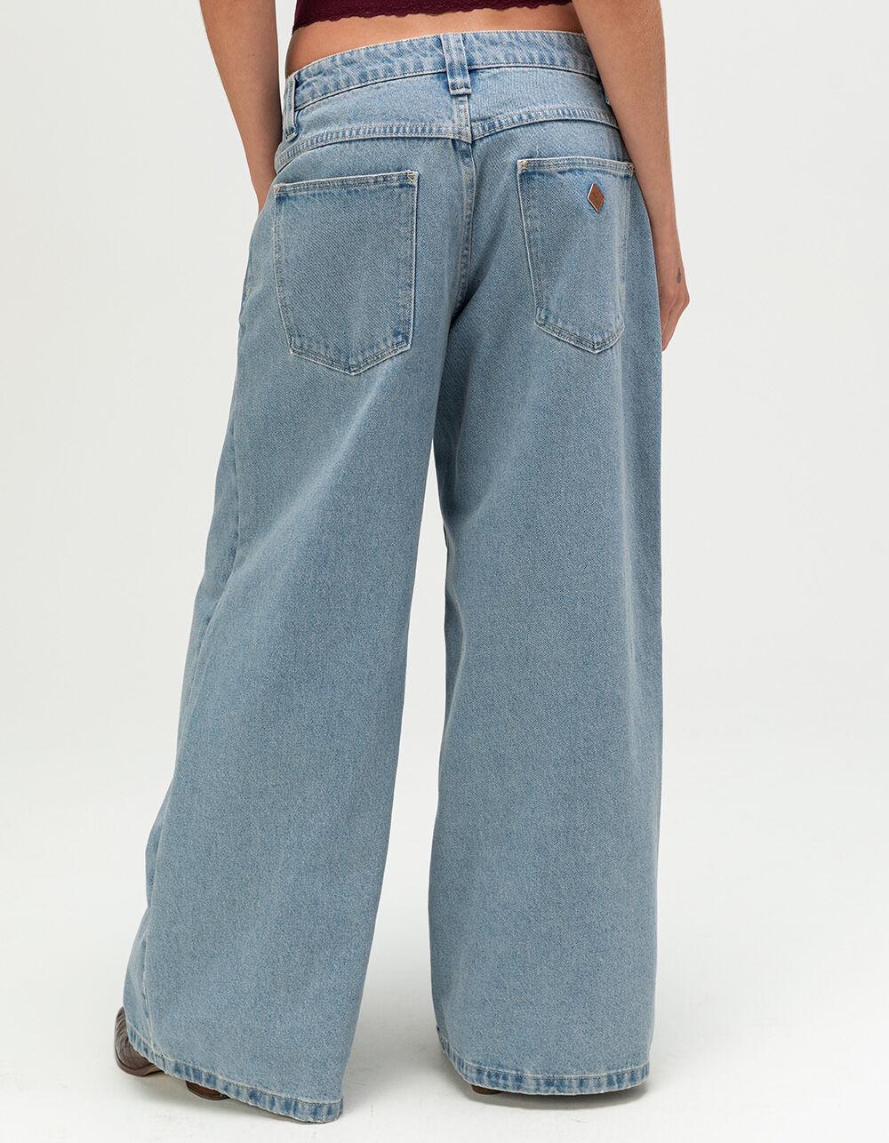 Abrand 99 Low Rise Mega Baggy Jeans. Step into throwback style with the Abrand 99 Low Rise Women's Mega Baggy Jeans. Designed with a nostalgic '90s vibe, these jeans feature a low-rise waist and an ultra-relaxed, mega baggy fit for effortlessly cool comfort. The 5-pocket denim styling, belt loop waist, and classic button closure with zip fly stay true to timeless denim design. Slight distressing and a light wash give them a perfectly lived-in look, while the wide 24" leg opening adds dramatic volume. Perfect for pairing with fitted tops or oversized layers, these jeans deliver bold, street-style energy. 100% Cotton. Machine wash. Imported.