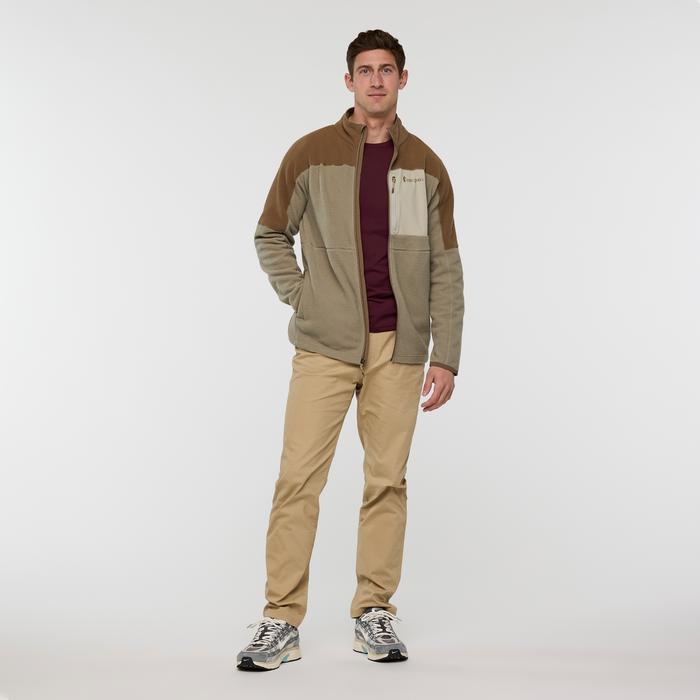 A cozy statement piece that embodies our commitment to sustainability, the Abrazo Fleece Full-Zip Fleece Jacket puts a Cotopaxi spin on the classic fleece with nature-inspired colorblocking and soft, fully recycled fleece.DescriptionA cool-weather classic made with 100% recycled fleeceHow it fitsRegular FitFeaturesStretch woven chest pocketElastic binding at collar and cuffs2 hand pocketsMaterialsShell: 100% recycled polyester (215gsm)Woven overlay/chest pocket: 85% nylon, 15% spandex (148gsm)